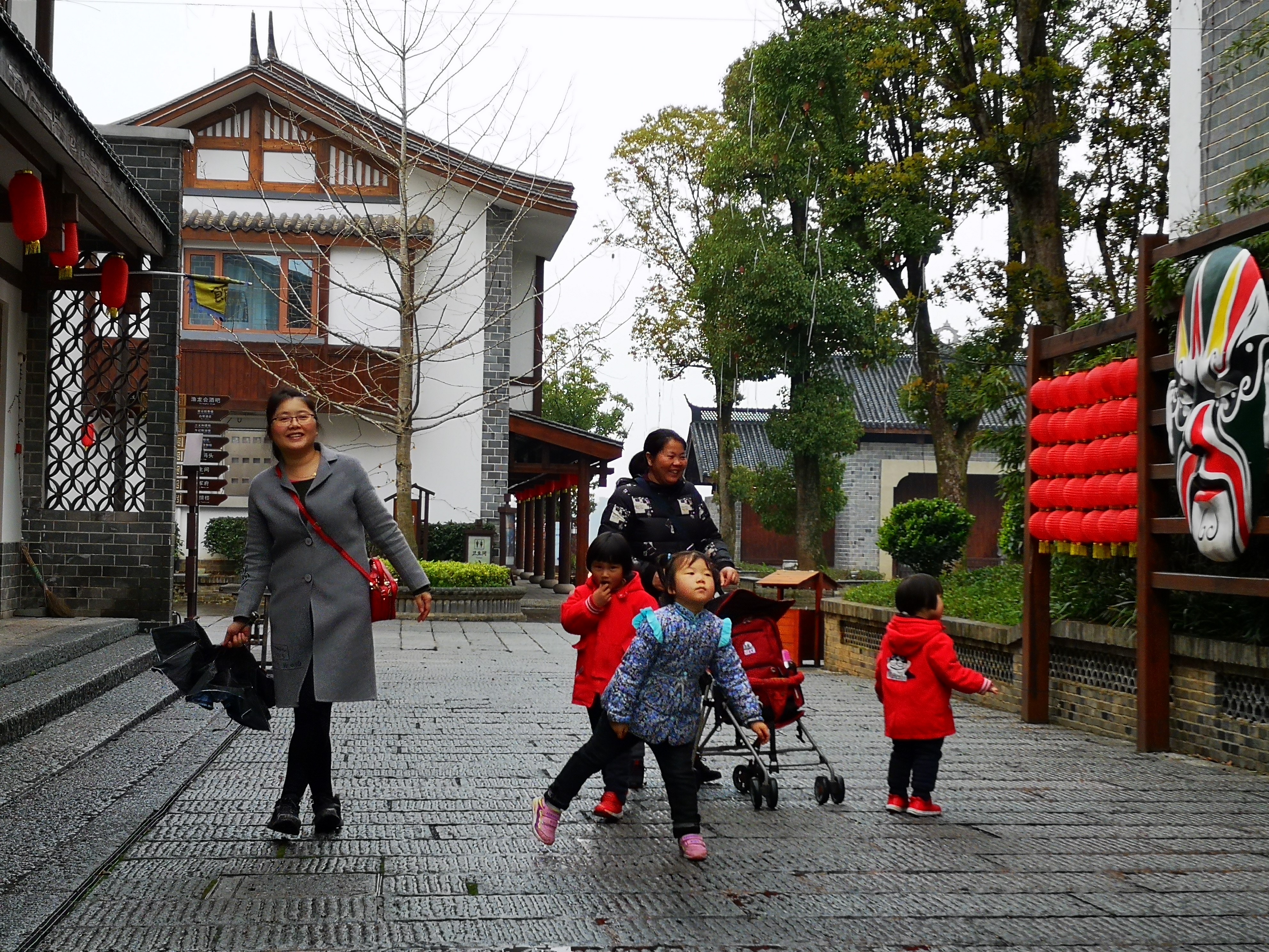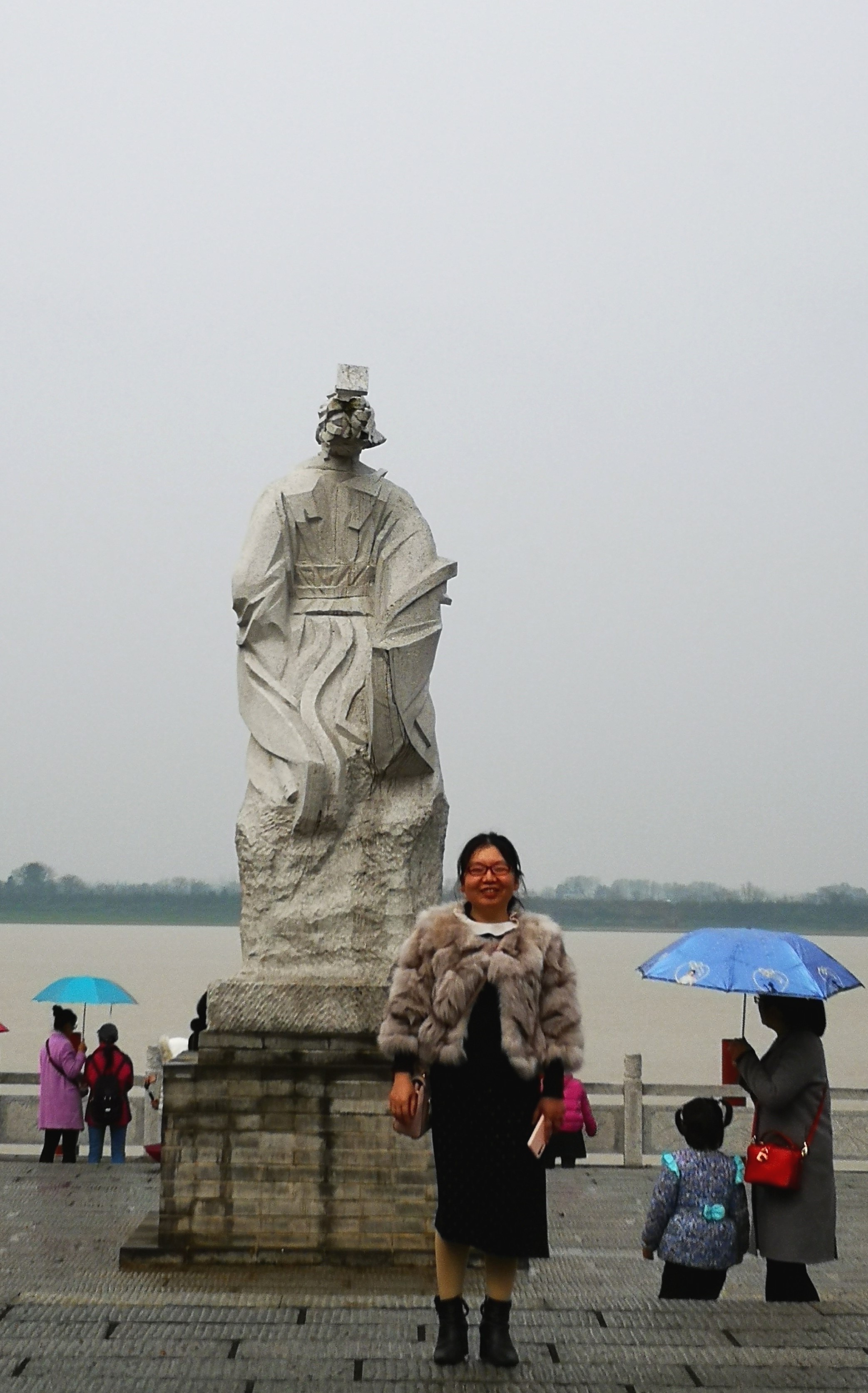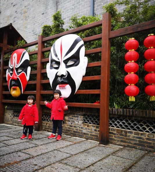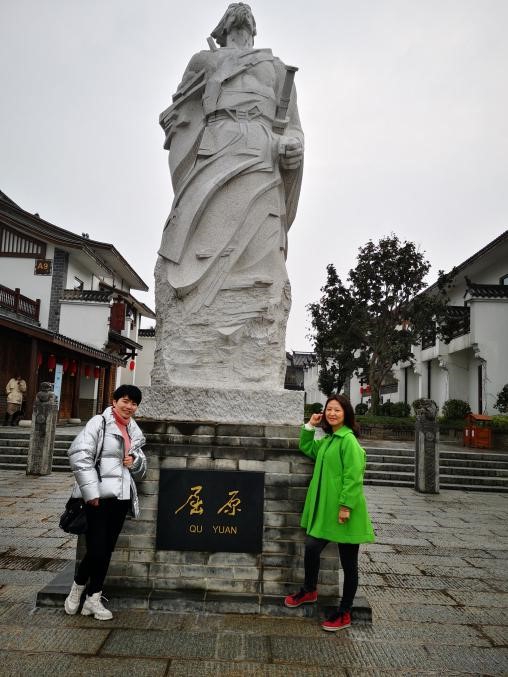 【渔窑小镇脸谱墙和屈原雕塑】