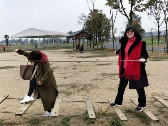 进入湿地公园,大家一路欢笑,徒步2小时,在桃花园、油菜花园、蔬菜园和天鹅湖及珍禽驯养基地、户外拓展基地等放飞美丽的心情,大家互帮互助,全身心的参与,舒活筋骨。