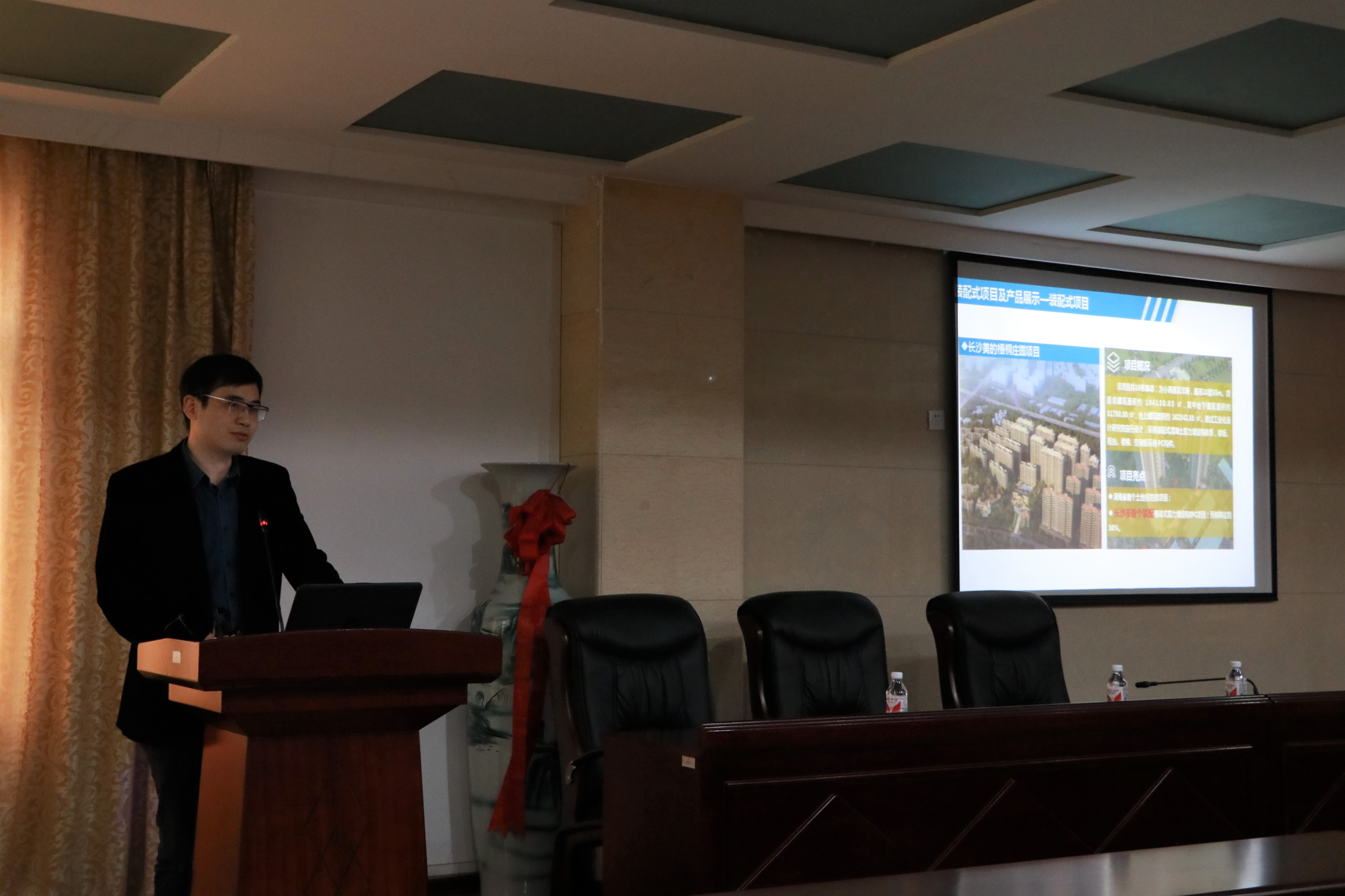 周泉所长此次报告主题为“新型装配式建筑关键技术研究与应用示范”。他首先介绍了中建五局的基本概况并展示了装配式项目及产品。目标是通过智能制造关键技术、以BIM为基础的新型装配式建筑设计关键技术、质量控制与安全保障技术等建立新型装配式建筑结构体系。项目考核的重点为缩短20%~30%工期、自重降低40%~50%能耗降低10%~20%。随后对新型装配式技术体系进行介绍,通过分析目前国内装配式住宅主要技术体系的主要问题,对其作出分析得出结论,再将自身的理论与施工结合并在施工时发现问题不断改进。最后还说明了与校企的合作方向,展示了对学生培养的器重并对现场的提问一一耐心解答。