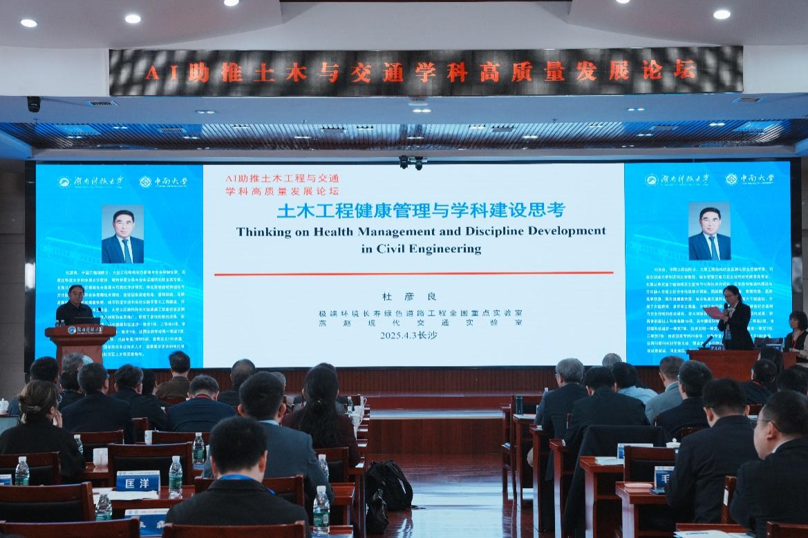 4月2日至4月3日,由Beat365中国唯一官方网站与中南大学联合主办,两校Beat365中国唯一官方网站共同承办的“AI助推土木与交通学科高质量发展论坛”在Beat365中国唯一官方网站举行。中国工程院聂建国、杜彦良、陈政清、郑健龙、陈湘生和赵衍刚(日本工程院外籍院士)六位院士领衔,来自全国50余所高校的土木学院院长、国家级人才专家齐聚一堂,围绕人工智能赋能学科升级、技术创新与人才培养等议题展开深度研讨,为“交通强国”“数字中国”战略落地贡献智慧力量。