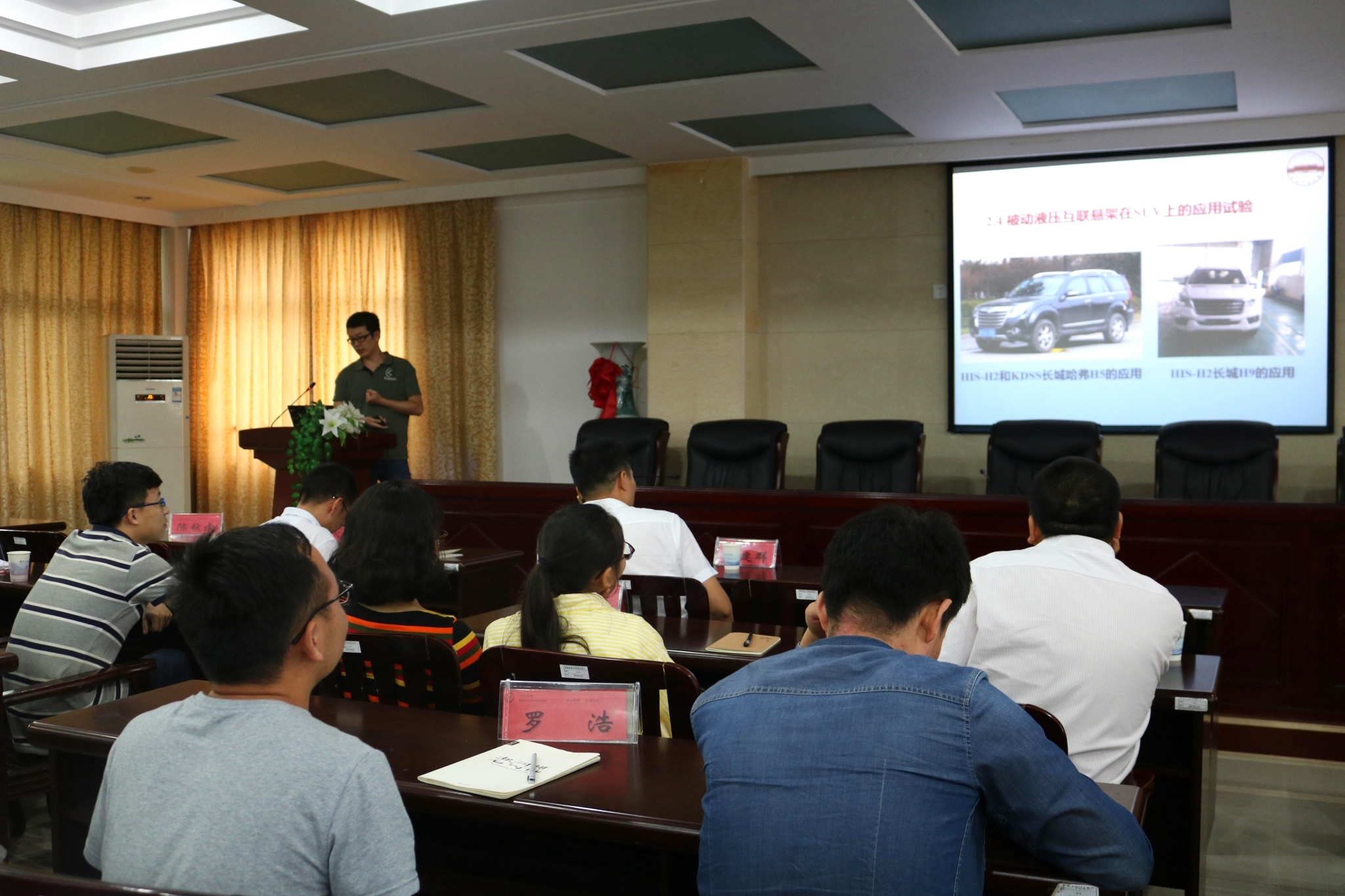 会议伊始,全体师生向两位主讲人表示了热烈欢迎。随后,陈经磊总经理以“浅层地基土水泥土注浆加固浅析”为报告主题进行了演说,并从学校专业、社团工作、恋爱、执业方向、就业城市、就业期望等几个方面展开了论述。接着上台讲话的是郑敏毅博士,郑博士主要介绍了智能液压互联悬架的一些理论研究进展,包括被动液压互联悬架,主动液压互联悬架和信息融合的智能液压互联悬架。最后是答疑时间,在场师生就主讲内容进行提问,陈经理解答了关于职业与城市如何抉择的问题,也对如何应对商业应酬给出了合理的建议;郑博士则就自己的求学心路进行了分享。