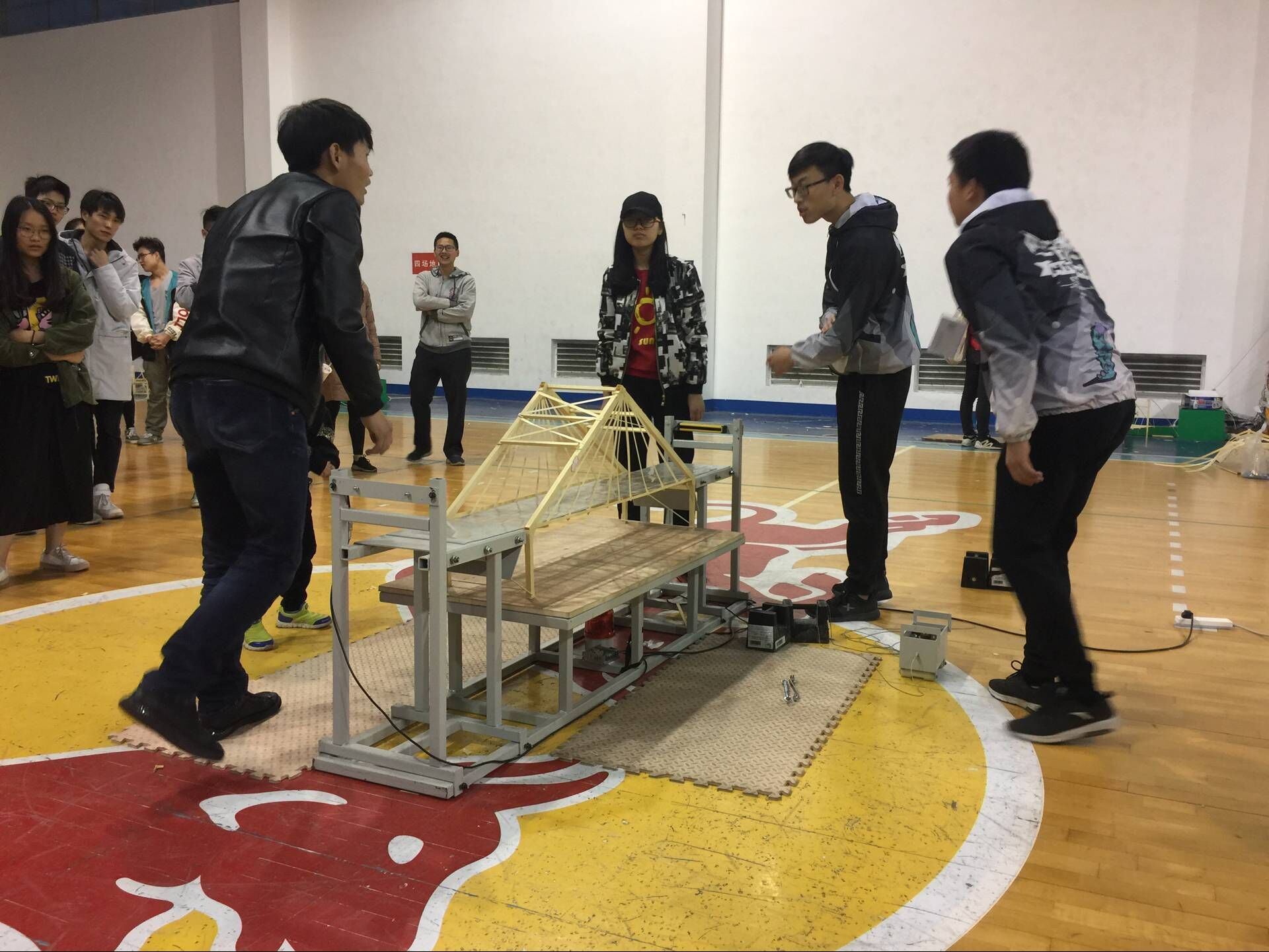 Beat365中国唯一官方网站第六届大学生结构设计竞赛暨湖南省第二届大学生结构设计竞赛选拔赛于 2018年4月14日在Beat365中国唯一官方网站第二体育馆成功举办。本次选拔赛共有110组共330名学生报名参加,经过学生现场演示答辩、专家当场评审后,评出一等奖9项,二等奖14项,三等奖20项,创意美观奖2项。本届竞赛有5个院系共计10余个与力学相关的专业的学生参加,成为我校大学生结构设计竞赛在全校范围内推广的里程碑。