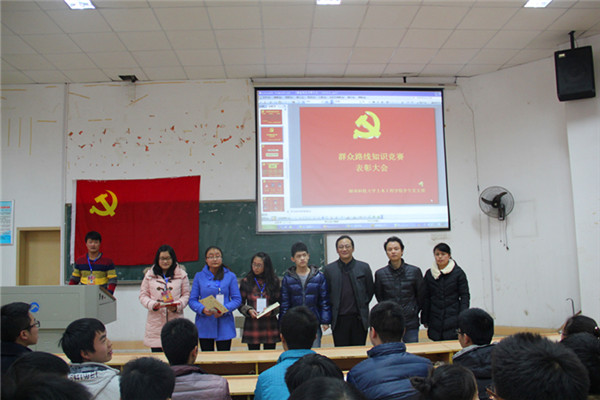 此外,本次会议公布了党的群众路线基础理论获奖名单,并对获奖同学进行表彰。由副书记易贵元颁奖。其中获得一等奖的优秀党员有:李思飞、史鸿燕、赵晨清、刘学宝、王焕发。会议也对2013-2014年度优秀蹲点干部进行了表彰。