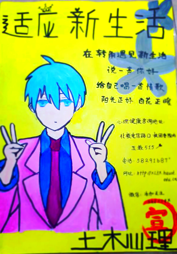 心理健康 心理健康 首页 / 历史栏目备份 / 心理健康 / 心理海报、杂志 心理海报、杂志 适应新生活 发布时间:2013年04月18日 编辑: 访问量: 你好,大学。 刚进入大学,就要开始准备进入新生活了,你准备好了吗?这里有新的老师,新的同学,新的学习方法,新的困难挫折。你准备好了吗? 每个人有每个人的方法.新生活里充满了新朋友,以自己性格方式去处人际关系 。 还有新生活是想改变过去的自己,那就需要有忘记过去的恒心.与寻找新动力。 在转角遇见新生活,说一声你好,给自己唱一首情歌。街角的绣球花开得正好,阳光正暖。 校心健链接:http://xlzx.hnust.edu.cn/