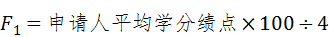 第十六条 学业成绩测评以前三年所修课程平均学分绩点为依据,采用如下公式计算学业成绩测评分(用F1表示):