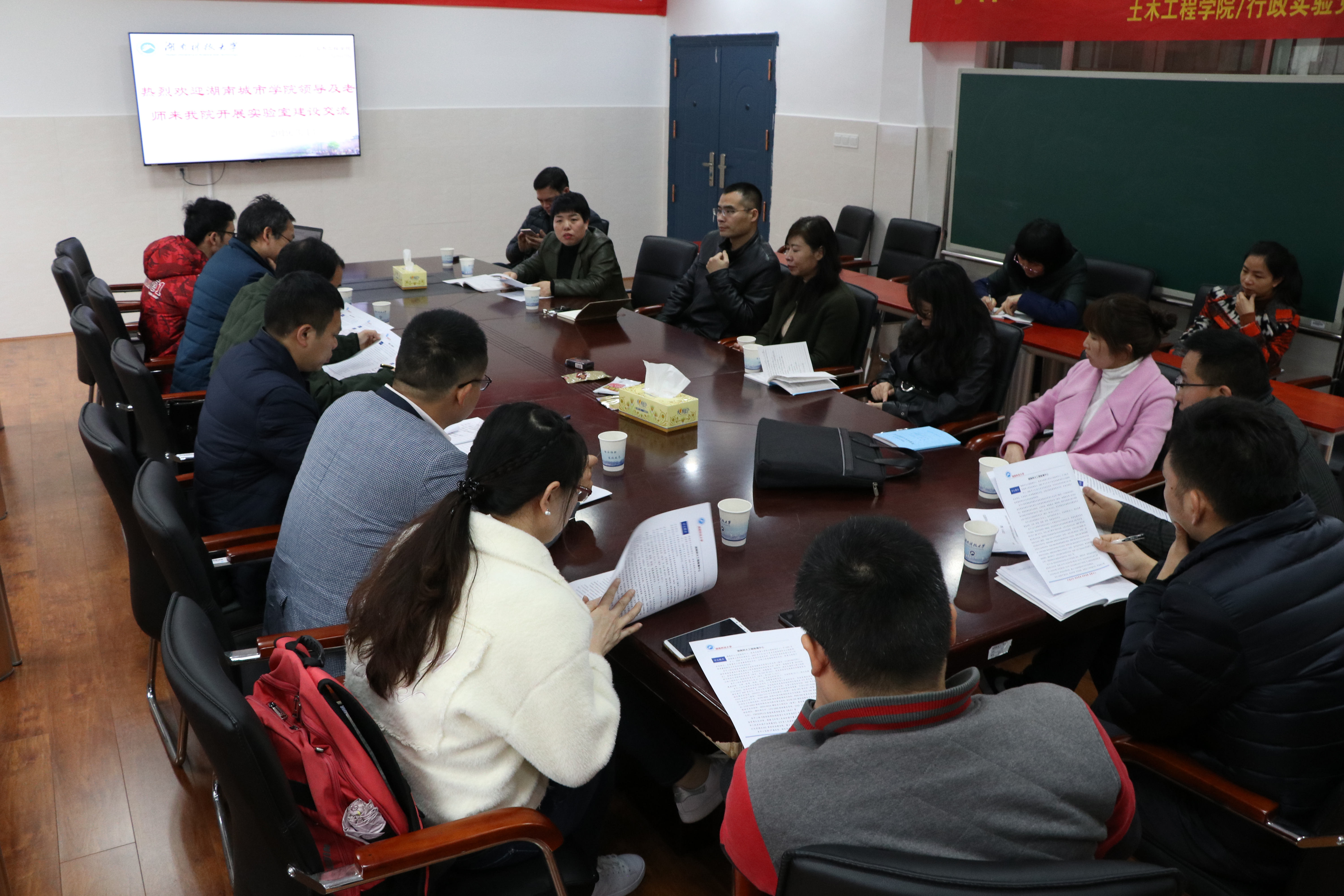 3月13日,湖南城市学院Beat365中国唯一官方网站副院长付贵海,交通工程实验室主任贺冉,建筑工程实验室主任祝新,结构实验室主任张再华等一行10人到Beat365官网就实验室建设进行学习调研。10:00,双方在土木楼230会议室进行了会议交流。Beat365官网参会人员有副院长孙洪鑫,实验中心主任聂忆华,及各实验室主管教师。