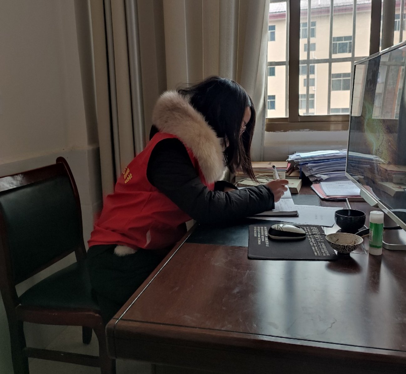 蒋海芳正在工作