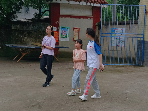 放学后,志愿者送小朋友们回家,他们和小朋友们手牵着手,走在崎岖的山路上,再一次感慨小朋友们来上课的路途的艰难,并与他们进行一对一的交流,希望以朋友的身份去了解当地儿童的家庭情况与内心的想法。同时也希望能够在短暂的时间内尽可能给予这些留守儿童们更多的关怀与关心,弥补因为缺少父母的陪伴与关心造成的内心空洞。让他们感受到社会的温暖和关爱。同时也将这份温暖的种子埋在他们的心底。期待着“三下乡”的志愿精神在偏远的深山中生根发芽。