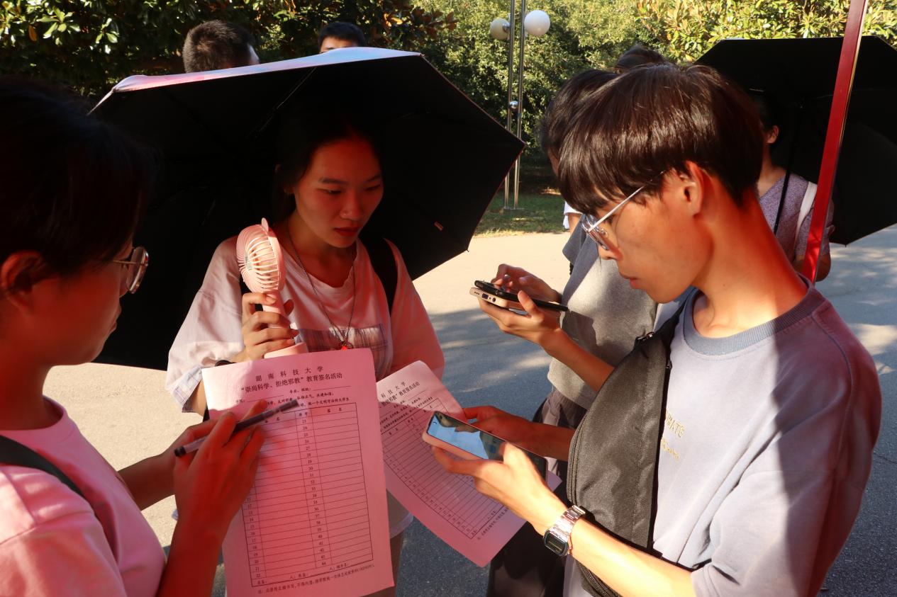 9月22日,为深入推进反邪教宣传教育工作,营造浓厚的“反邪教,树新风”氛围,提高同学们识邪拒邪反邪能力,新生军训期间,Beat365官网学生会干部组织开展了2021年度军训反邪教宣传教育签名活动。