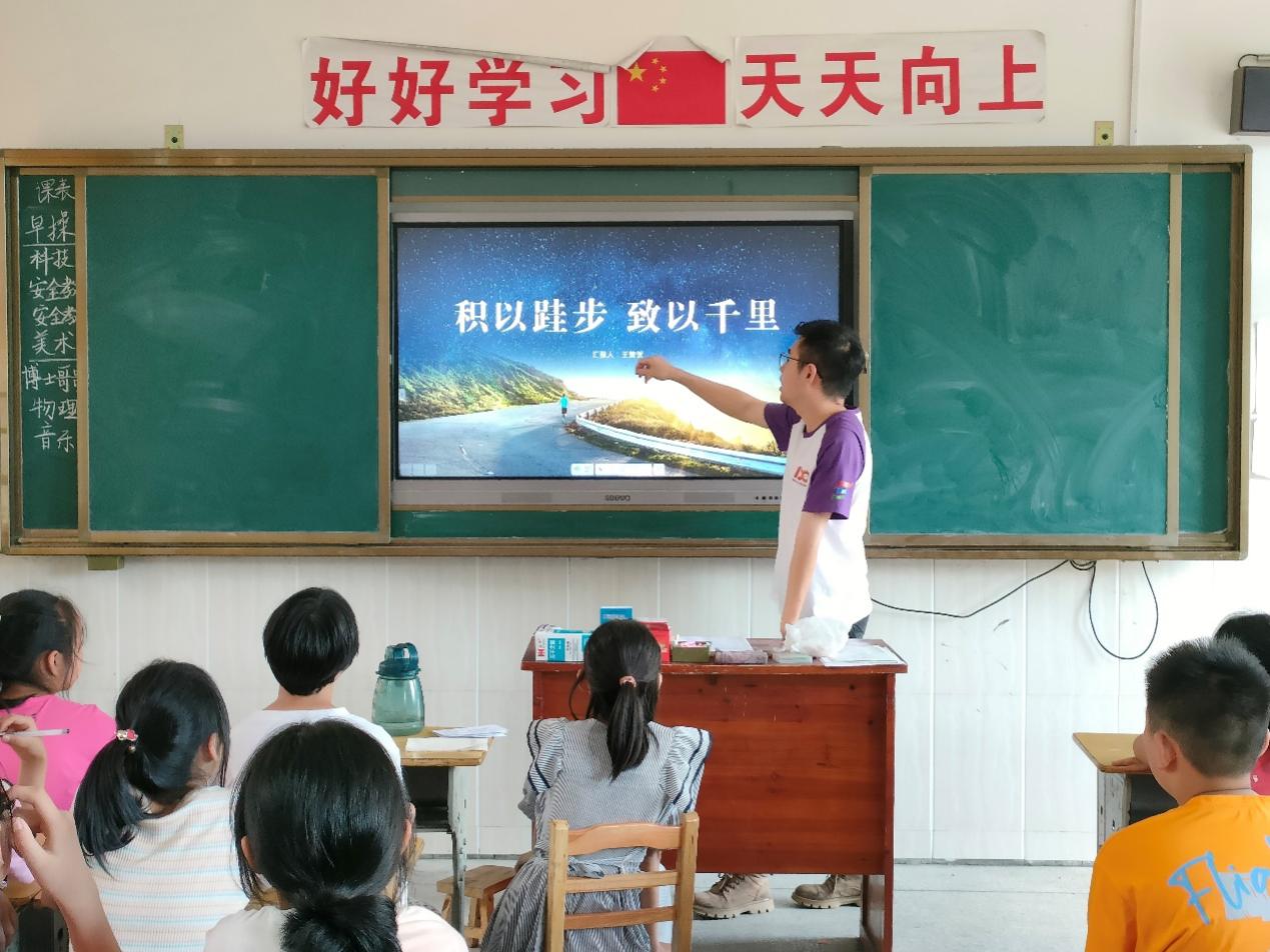 支教组还联合博士科技服务团开展了“博士哥哥进课堂“活动,邀请博士科技服务团成员王楚贺为孩子们开展以“积以跬步,致以千里”的专题讲座,在课堂中,王楚贺结合自身经历,名人故事等,与孩子们共同探讨理想与未来,同时也向孩子们阐述了读书的意义。此活动能够让孩子们从小就树立远大理想和抱负,明白学习的重要性以及知识改变命运等道理。