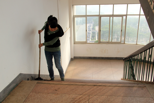 10月27日8:30,入党积极分子在土木楼内进行大扫除,在党支部的合理安排下,活动有序开展。每个积极分子都在认真打扫卫生,一遍又一遍地清理垃圾,每个人都忙得不亦乐乎。
