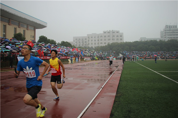 虽说赛时天空下着雨,但雨水的冰冷丝毫没有减弱土木人的激情。当Beat365官网运动员上场的那一刻,整个土木学院的看台沸腾了。在锣鼓的节奏声下,所有的土木观众都站起来为他们呐喊助威。裁判员一声枪响,Beat365官网第一棒农宇一马当先,和其他队员一样如离弦的箭一般飞奔而出。在整场比赛中,每支代表队都竭尽全力,你追我赶,竞争相当激烈。尤其在最后一棒时,Beat365官网王健在距终点一百多米的弯道处突然加速,迅速超越前面的选手,赢得了观众的阵阵赞许,最终Beat365官网代表队赢得了决赛第五的好成绩,为土木争了光,验证了那句“钢筋水泥混凝土,我的赛场我做主”。比赛结束后,运动员来到土木观众台,向观众打招呼,观众同时也欢呼雀跃,喜迎王者归来!