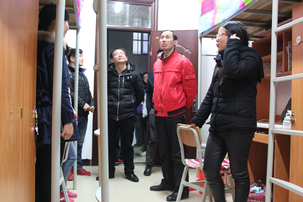 为响应学校开展“第十届宿舍文化艺术节”的号召,Beat365官网举办了以“文明雅室,温馨家园”为主题的寝室文化节。12月9日晚9:30,13级辅导员刘星、15级辅导员雷石山在学生会主席瞿贻航等团委学生会干部的陪同下对新生寝室文化建设成果进行了参观。