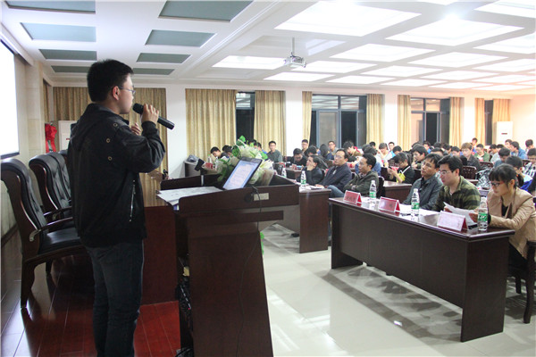 在主持人介绍到场嘉宾及宣读答辩注意事项之后,本次大会于晚上七点正式拉开序幕。参加答辩大会的项目组共有33组,各项目组的演讲人根据自己小组的研究及专业知识,以PPT的形式向大家展示课题的创意、原理、思路、经费预算以及实际应用价值,生动丰富且各有千秋。如《改性沸石吸附湘江水中重金属离子的研究》侧重实地考察并针对湘江的污染提出相应对策。而项目组《锰氧化物可见光下光催化降解多氧苯的研究》则侧重于理论知识与实际的结合。另外《集能式电磁阻尼器设计与研究》,《土质边坡中压力分散型锚杆加固机理》,《湘潭市二环线路面再生养护的适用性分析》等项目组也以创新为中心结合现实提出针对性研究。展示过程中,评委老师们非常认真地思考每一个课题并向其演讲人提出自己的疑问,对大多数小组提出的研究课题的范围进行了规范,指出了研究中的不足,坐在下面的同学也时不时爆发出阵阵掌声,浓浓的学术氛围笼罩着整个会场。