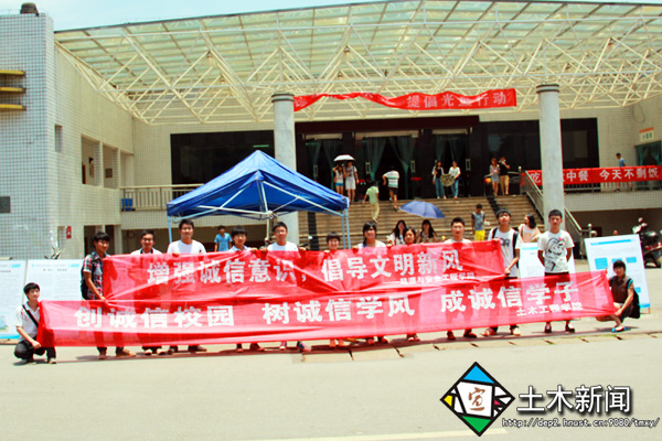 5月27日中午,在Beat365中国唯一官方网站南校美食广场前举行了由Beat365中国唯一官方网站主办,土木工程学院和能源与安全工程学院联合承办的诚信教育校园活动。全院学生积极参加此次活动,热烈响应诚信教育宣言:创诚信校园 树诚信学风 成诚信学子。