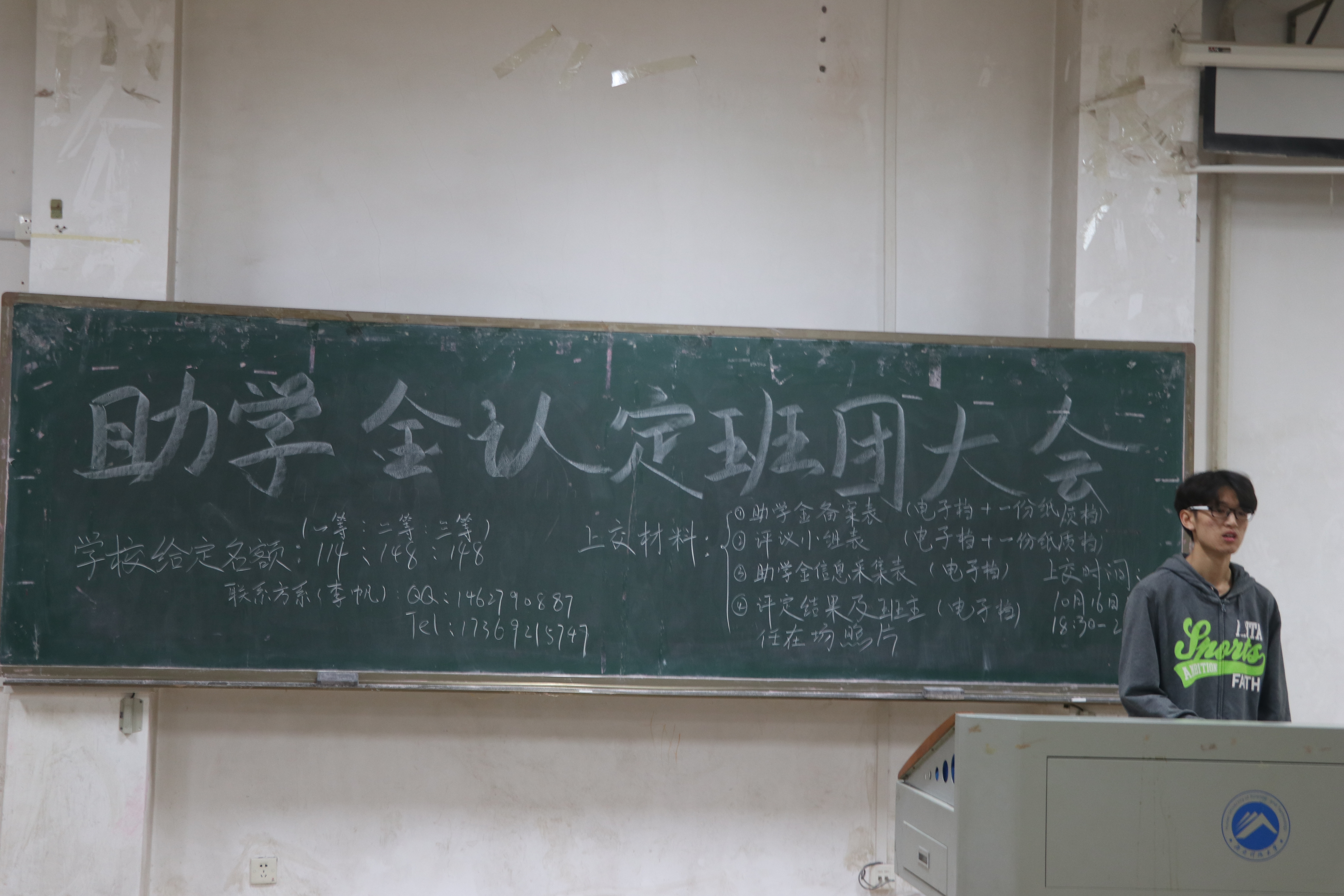 10月14日19:30,助学金班团认定大会在第五教学楼2-1召开,出席本次会议的有Beat365官网负责老师杨钋平,18级新生助班蹲点以及各年级各班班团。会议由勤工部部长李铭灿主持。
