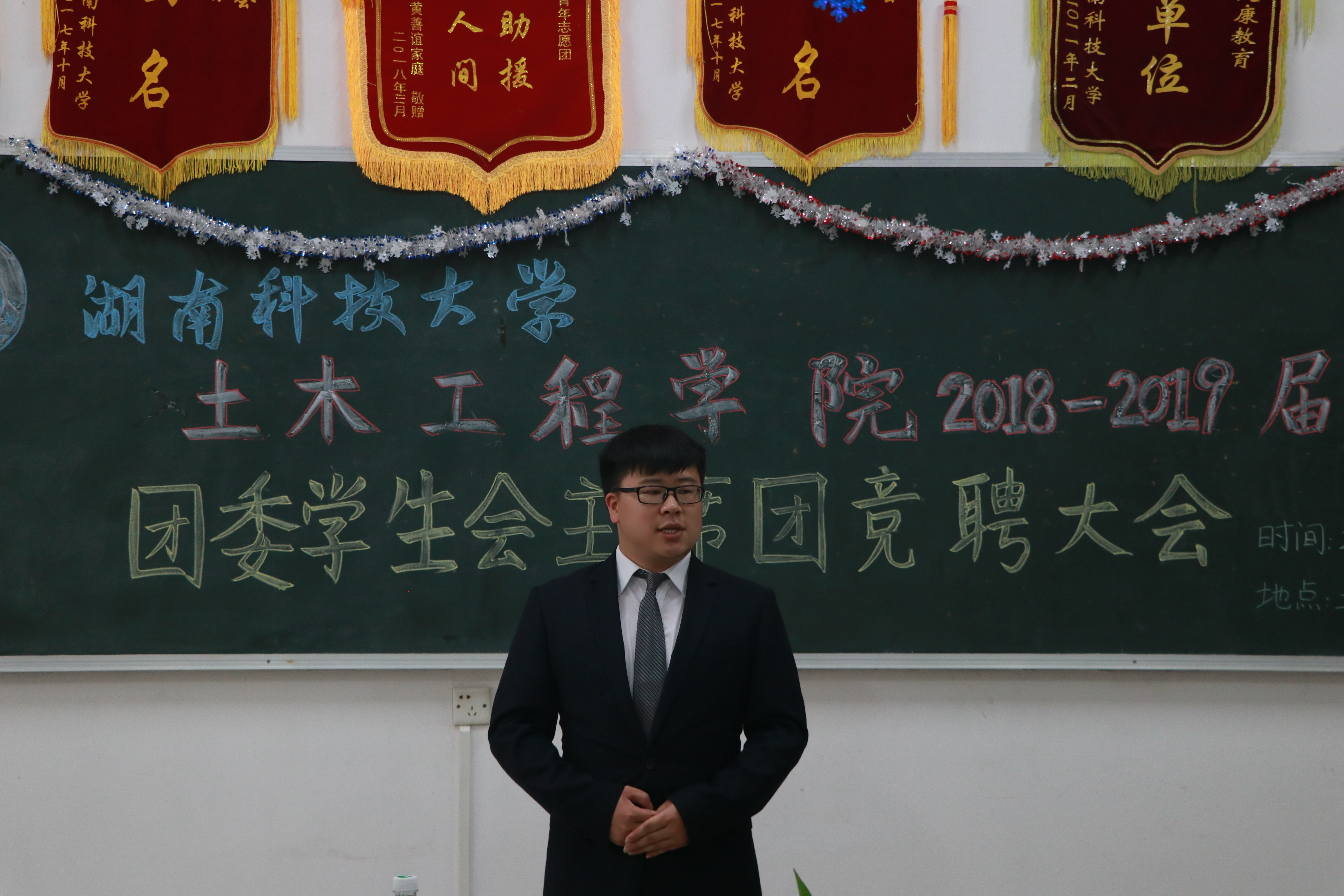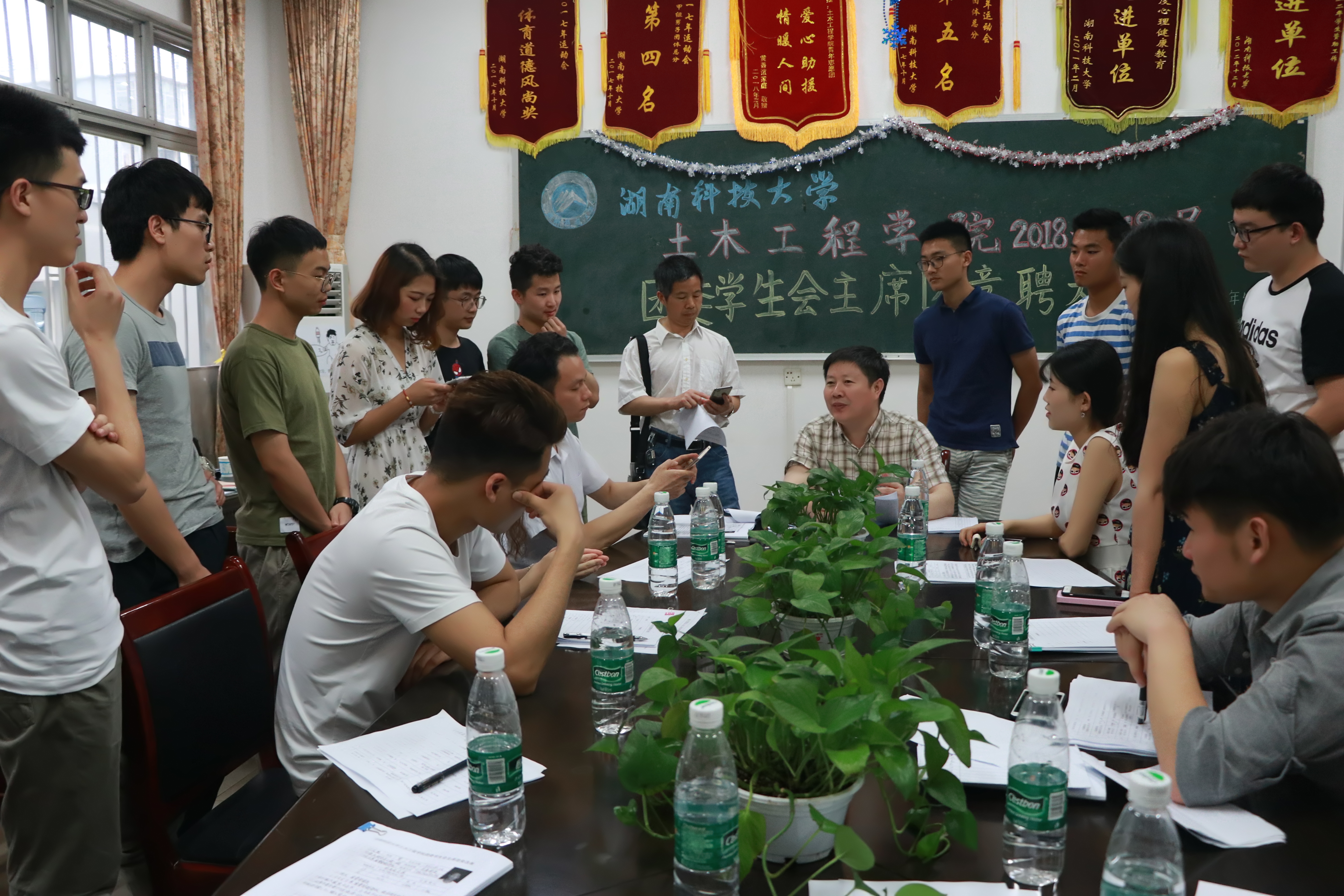 5月18日15:00,Beat365官网2018-2019届团委学生会主席团竞聘大会于土木楼236正式召开。出席此次会议的有院学工办主任虢利钢、就业妈妈曾淑艳、勤工资助负责人杨钋平、党建办负责人曾竞兴、15级辅导员罗佳、16级辅导员肖鹏飞、17级辅导员刘星以及主席团全体成员。团委第一副书记邓婉珍主持本次会议。