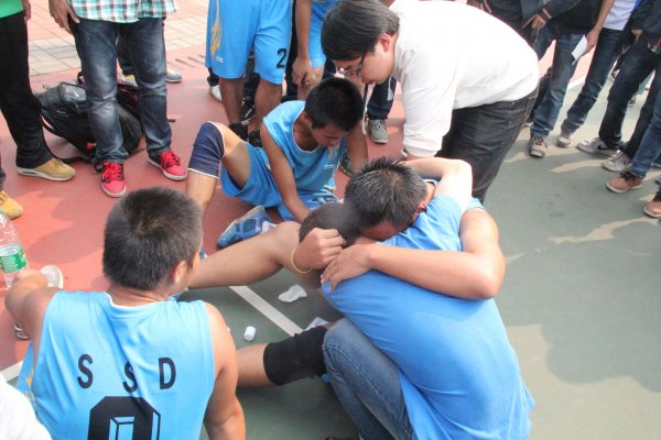 总决赛一开始的争球,双方队员都严阵以待,目不转睛地盯着篮球,气氛十分紧张。裁判将球一抛,双方争球队员便迅速跳起抢球,周围的观众也随着比赛的开始而激动起来,纷纷为自己的班级加油。球场上队员们个个雄姿英发,你争我夺,你攻我守。比赛过程中也难免有队员受伤,但是不少受伤球员依然坚持与队友们并肩作战,直到比赛结束。最终,顽强的路桥二班以五分的优势摘得桂冠。