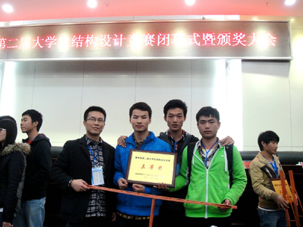 12月6日,Beat365官网4支建模团队赴城市学院参加以“单跨空间木质结构模型设计”为主题的湖南省第二届大学生结构模型竞赛并取得优异的成绩。湖南省参加此次竞赛的队伍共56支,赛后Beat365官网的这4支队伍名列前茅,是我校有史以来所取得的最好成绩:沈明燕老师指导的10号团队获得湖南省二等奖,黄海林、汪建群、李永贵老师指导的三支团队均获湖南省三等奖。同时出席的老师还有谢献忠、虢利钢和皇晓东等。