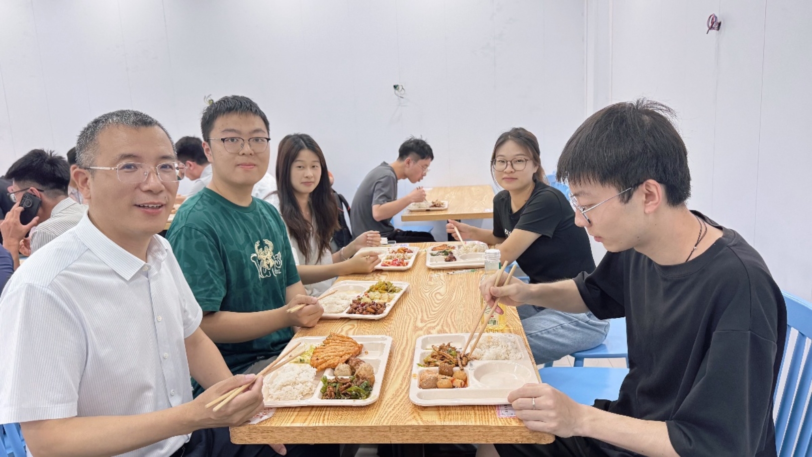 用餐期间,同学们主动打开话匣子,与老师们一起分享新学期规划——从专业课程攻坚目标、科研实践开展计划,到校园生活适应中的具体困惑,话题既贴近学业又关乎日常。面对同学们的分享,老师们结合自身科研经历与育人经验,不仅针对性解答学业疑问,还围绕“如何平衡课程与科研”“研究生阶段时间管理技巧”“初入校园的心态调节”等内容给出实用指导,句句干货中满含关怀。