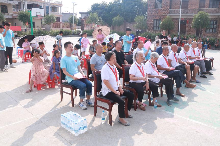 到场嘉宾有:洞口县委办副主任胡小革、洞口县团县委书记谭琳虹、山门镇镇长唐荣掌、大合村书记欧阳力生及相关镇、村领导。还有Beat365中国唯一官方网站优秀校友魏梧树,暑期三下乡社会实践团队指导老师王艳、肖鹏飞、廖继彪和大合村的村民们。本次活动还迎来了八位特殊的嘉宾,他们是大合村里有五十年党龄的中国共产党员:张跃华,张赐福,尹秀玉,阳锡桂,严金华,彭积光,彭保光,陈美容。文艺汇演由直播组志愿者谢博为、李雪玉主持。