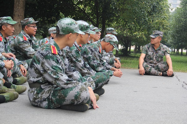 与前几天高强度的体能训练不同,今天的训练强度减小了,休息时间的娱乐活动格外吸引人的眼球。拉歌是军旅生活中不可缺少的一部分,四位排长带队将各自的排分别坐于四方,拉歌开始了。四个排都派出代表,通过一个“教官说”小游戏角逐出最终胜者,被淘汰的三个排则要表演节目。同学们都大胆上台,显示自我,欢声笑语一片。其他的排也创新玩法,脑洞大开。各个排之间的“互呛”也格外有趣,一次又一次的“挑衅”,一回又一回的对抗,引得大家的欢呼喝彩。这抹迷彩色中飞出的笑声,让阴沉的天空似乎都多了几抹色彩。