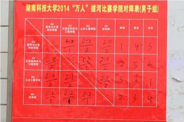 一条长绳把一群人紧紧的连在一起,一声哨响,人人用力,在这短暂的时刻,大家都为一个共同的目标, 进入忘我的境界。比赛中队员们都能够坚持不懈,为了土木的荣誉而发挥自己最大的能力,最终获得小组赛九场全胜的佳绩。