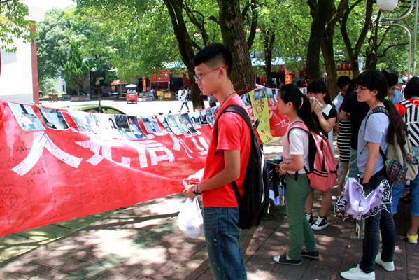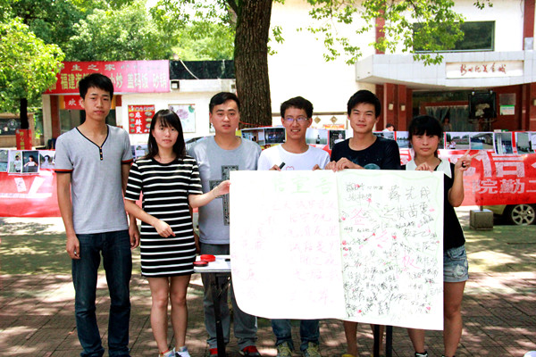 白云当空,艳阳高照,前往美食城的路上人山人海。此次活动以照片宣传,学生联合签名等方式来加强我校学生诚信教育,提高学生的诚信素质,增强学生的诚信意识。签了名的同学还可以获得可口的小零食,这些别出心裁的方式使在场的同学和老师,及路过的行人积极地参与到其中。场面热闹无比。