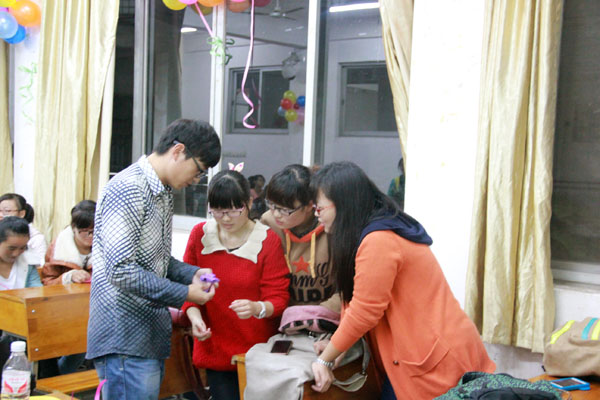 本次活动秉持着促进同年级女生的交流,解决新生入学在生活和学习中的困惑,并且引导同学们以"立志、乐学、修身、成才"、弘扬青春活力为大学期间的目标。简洁的开场白后,建工二班的男生彭昱翔,为大家带来了动感的街舞表演,获得了全体女生热烈的掌声。紧接着的是校“金手指协会”会长带领大家制作手工玫瑰花,这可难倒了很多女生,但在会长的耐心讲解下,不少同学都折出了像模像样的玫瑰花。折纸活动结束后,主持人组织大家观看了在大一女寝拍摄录制的视频,一点一滴,欢笑和泪水,她们都铭记在心。最精彩的就是游戏环节,主持人邀请了12位同学上台,开展“你画我猜”的游戏,场面十分热闹。在大家的欢声笑语中,见面会也渐渐地接近了尾声。最后一个节目是由路桥一班的白玛琼和建工一班的德珍带来的藏族歌曲清唱,嗓音空灵清澈,可比天籁。