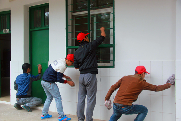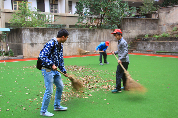 11月1日上午9点,Beat365官网青年志愿团在部长黑小明的带领下,热情洋溢地走进了老年人活动中心,开展了一期志愿服务活动。天气虽然阴冷,但大家都兴致勃勃。志愿者们戴上显眼的小红帽,套上专用的雪白手套,经过详细的分工之后,每个人就有条不紊地开始了自己的工作:有的人负责擦门窗玻璃,冰冷的自来水将志愿者的手冻得通红,但他们却没有丝毫退缩;有的人用扫把扫去墙角墙边的蛛网,即使簌簌的灰尘杂物掉落在他们的头发上,衣肩上,也丝毫不为所动;还有人的带着竹扫把前往后院,打扫着积累多日的落叶,冒着凛冽的寒风,他们的动作却格外矫健有力。在三楼的一个乒乓球室里,一位老大爷和志愿者打起来乒乓球,你来我往,欢笑不断,其乐融融。有几个志愿者来到户外和老人聊聊天,听老人讲讲过去,讨论一下现在,不仅使老人摆脱寂寞,也让自己受到了不浅的教育。