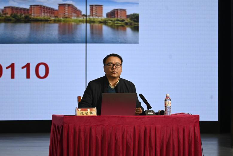 最后,保卫处处长沈智祥对全体新生进行了安全教育。他结合真实鲜活的案例,从消防安全、交通安全、电信防诈、人身安全、国防安全等多个角度,引导同学们深刻认识强化安全防范意识的重要性,携手为营造安全、和谐、稳定的校园环境而努力。