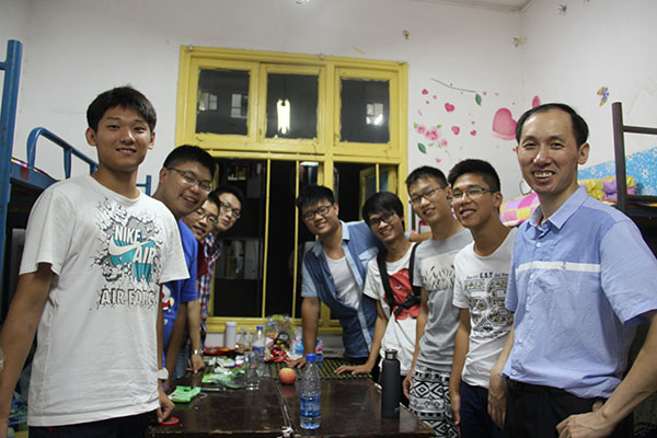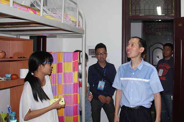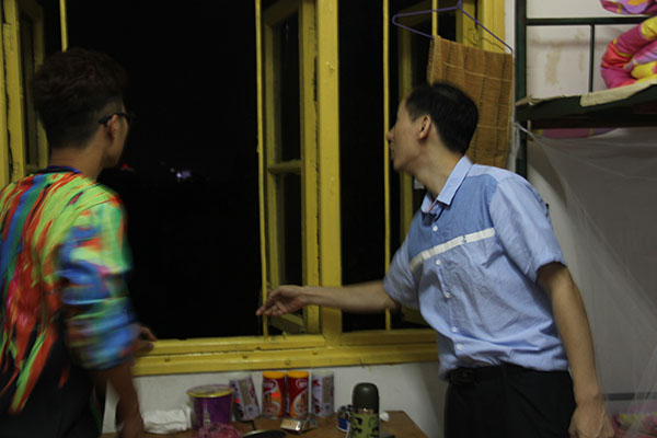 9月12日晚上,Beat365官网2015级新生辅导员雷石山在主席团、宣传部随同下去往新生宿舍探望新生并了解宿舍环境。