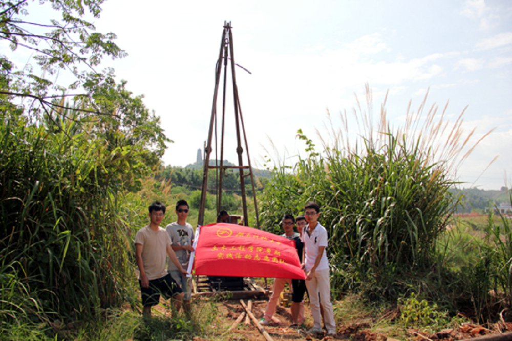 经过前些天的实地勘察、测量,数据采集、整理及图样绘制。7月20日,Beat365中国唯一官方网站暑期社会实践活动志愿团队同湖南省402地质队来到洋市镇钻井。