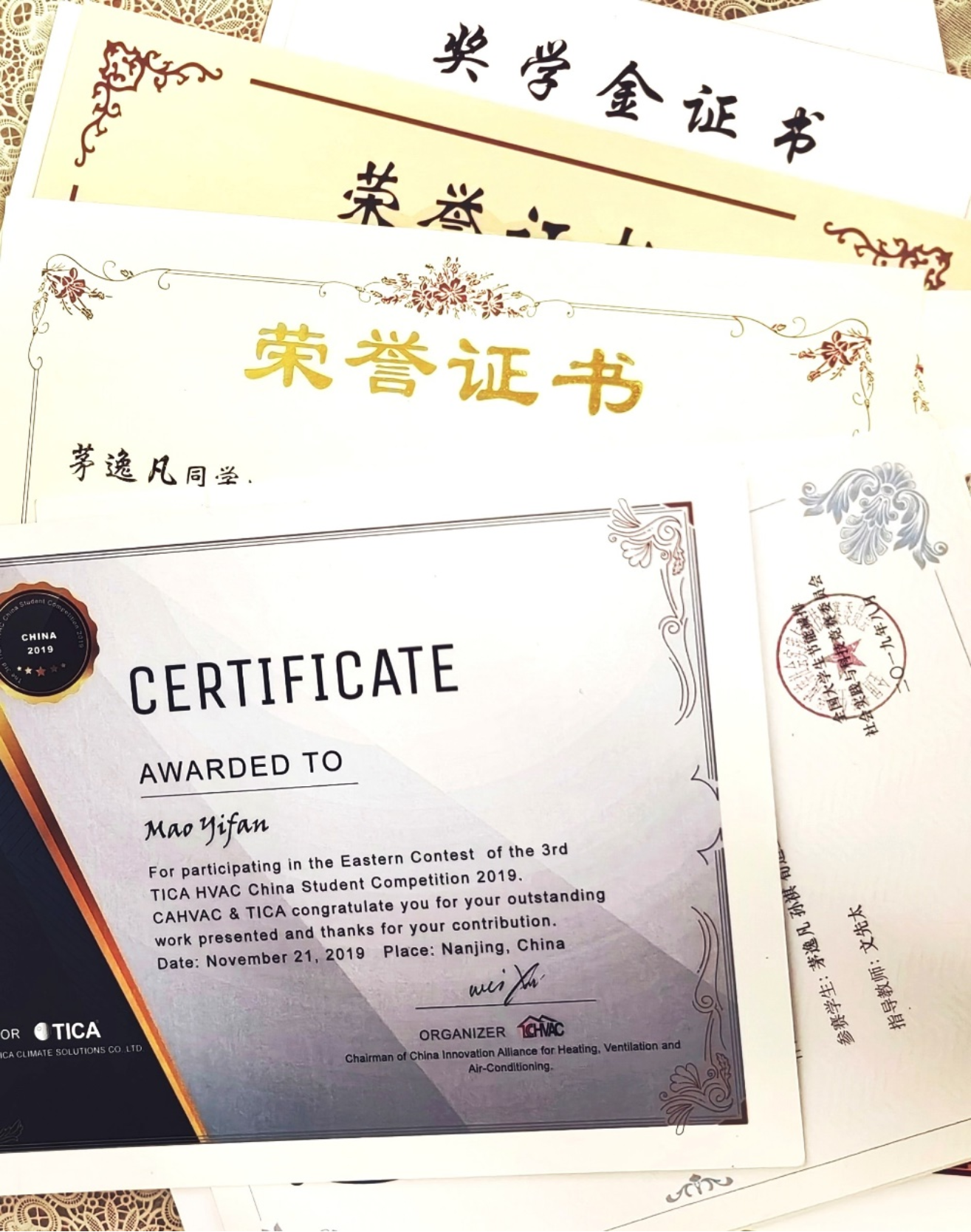 热忱,即使不去刻意表达,也会在长久的坚持中流露出来。科研,成为茅逸凡生活中的一部分。从大一进入实验室,开展挑战杯项目以来,茅逸凡开始了他长达7年的热泵领域的研究工作。在时间中修炼自我,在一次次的失败中,重振旗鼓。这些挫折使得茅逸凡真正迈上了科研之路,也更加坚定了他对热泵领域的选择和热爱。本科优秀毕业论文和优秀毕业生是对他本科科研经历最好的认可。
