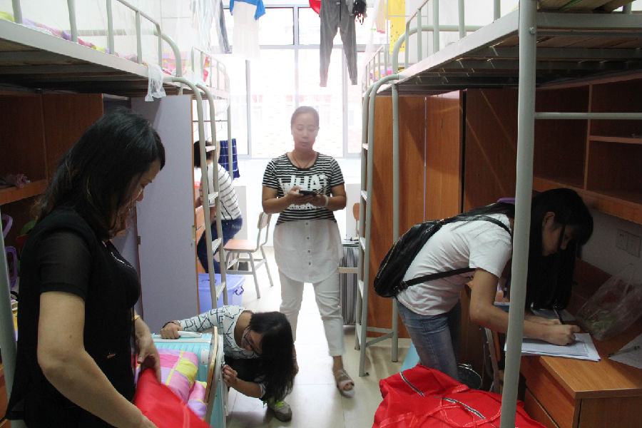 昨天,基于学生会和志愿者们的辛勤忙碌,来到学校的新生们基本已入住自己的寝室。当我们来到八区新公寓Beat365官网女生寝室时,看到家长和同学们正在忙碌着打扫寝室,整理自己的床铺、卧具等。还有我们的学生会工作人员为家长解答疑惑,细心讲解入学报到还需办理的手续,以及还需注意的情况。还有志愿者们忙碌的身影,带领同学们找到自己的寝室,帮助同学们整理内务,同时也不忘交待开学期间要注意个人财产安全,面对推销物品主观选择,不盲目,要勇敢说不。面对学弟学妹们对新环境的懵懂而提出的有趣问题,志愿者们一一耐心解答。相信初来乍到的他们,开学伊始就学到许多经验,以便在接下来的大学生活中,有更充足的准备,更快的适应大学生活。