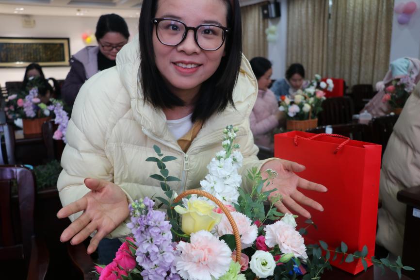 活动结束后,于梅春老师感慨道:“非常感谢学院精心筹备的这次插花活动,在三八节这个特别的日子里,既能学习花艺技巧、陶冶情操,又能和同事们一起交流互动,特别有意义。这份关怀让我们心里暖暖的,也让我们感受到了作为女教师的幸福与荣光,今后我会带着这份温暖与喜悦,继续深耕教学岗位,以更饱满的热情投入到工作中,为学院的发展贡献自己的力量。”