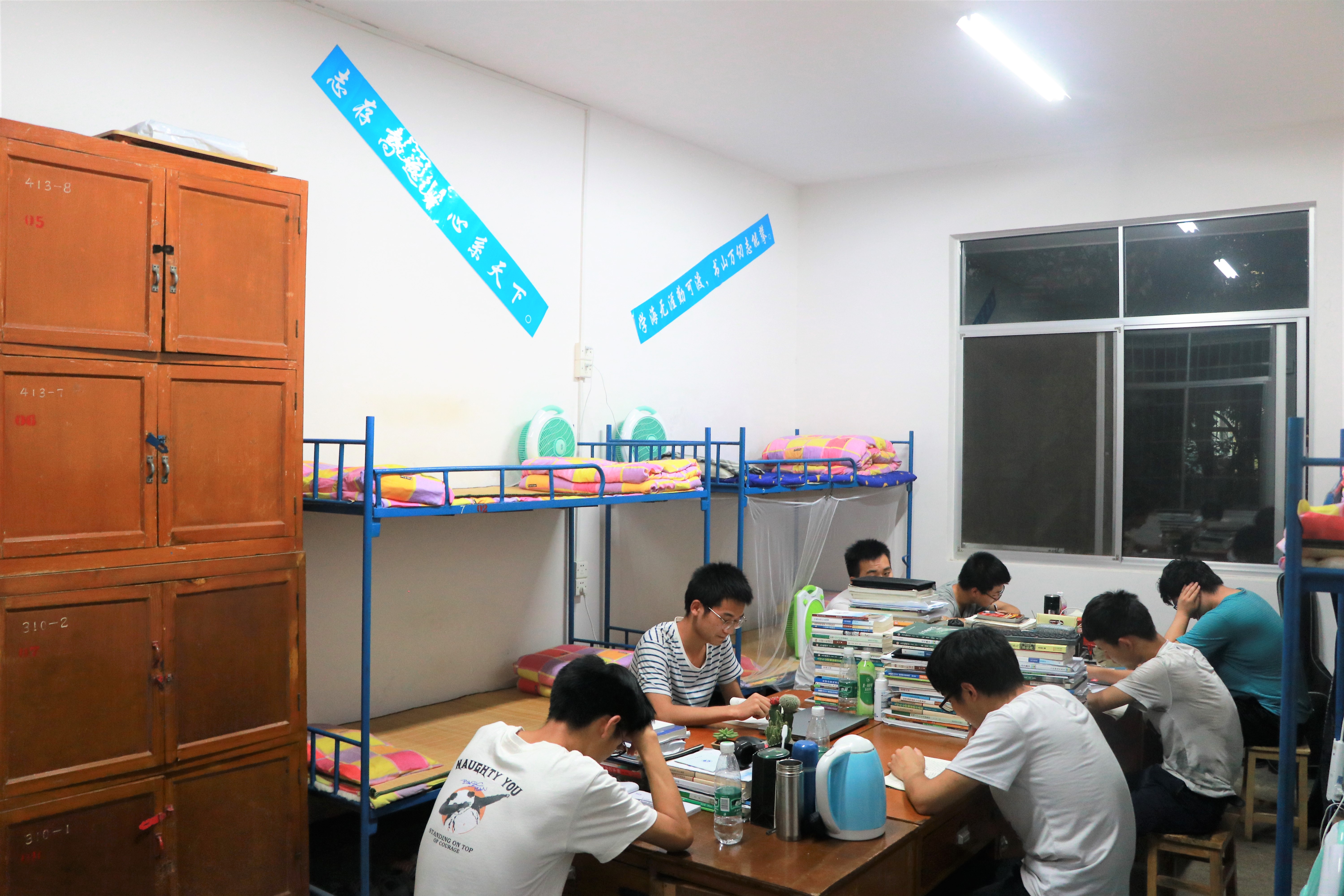 首先来到男生寝室,有的寝室挂满了各国国旗,看得出他们都是“世界杯”的狂热爱好者,希望他们在学习上也能如“世界杯”上各国球队一般你追我赶;有的寝室贴满了标语,以此来激励室友们好好学习;有的寝室装上了地板革,挂上了床帘,这使寝室变得更加温馨,更加富有家的气息;有的寝室有乐器、有健身器材、有打印机......麻雀虽小却五脏俱全,这无不透露出男生们对生活的精致要求。然后是女生寝室,贴心的寝室公约、干净整洁的书桌、温馨的照片墙、各类玩偶挂饰等等,都透露出女生们粉嫩嫩的少女心。相同的是每一间寝室都张贴了安全温馨提示,提醒同学们寝室安全的重要性。