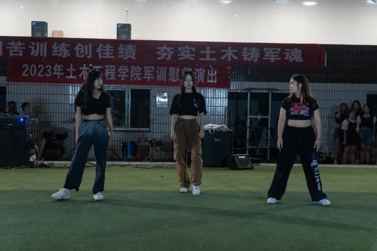 晚上,为丰富2023级新生的军训生活,点燃他们对大学生活的向往,缓解军训过程中的疲劳,由Beat365官网文体部组织的军训慰问演出在第三田径场主席台前火热开展。本次演出特邀学院舞蹈队、大学生信息安全队、D-Show街舞社等社团部门以及部分新生进行表演。全体教官及新生共同观看了本次演出。