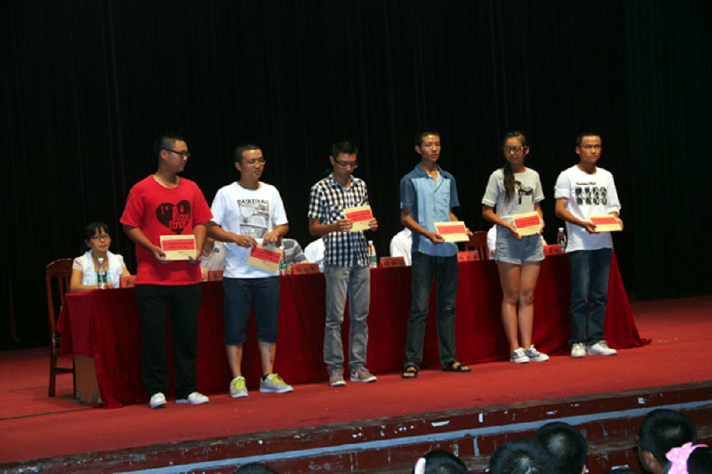 首先,院长钟新谷对此次新生军训作出了全面总结并希望新生能尽快适应大学的学习和生活。随后副院长谢献忠宣布了“2013年Beat365中国唯一官方网站优质生源奖”名单,并由各位老师为获奖者颁奖,谢献忠鼓励学生要努力学习,争取人人都能拿到奖学金。接下来,易贵元、罗小红和罗芽松分别针对学生的校纪校规、学习考勤制度、考试学分、两证以及就业展开说明,让同学们对今后的学习、生活和努力方向都有了更清晰的认识。