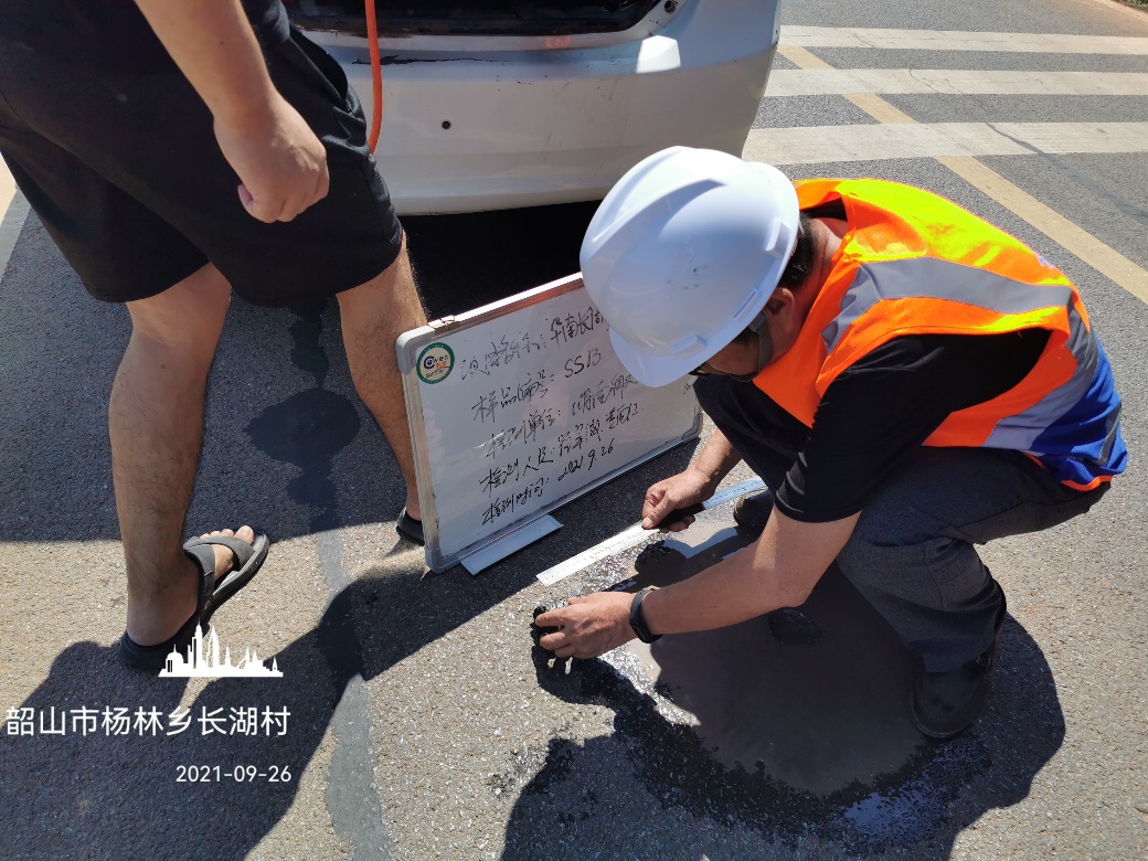 检测过程中得到了湘潭市交通运输局、湘潭县交通建设质量监督站、韶山市交通运输局质安站的大力支持,此次主要承担了5条、共计33.5km长的湘潭市脱贫攻坚自然村通沥青混凝土路面厚度及压实度的检测工作。
