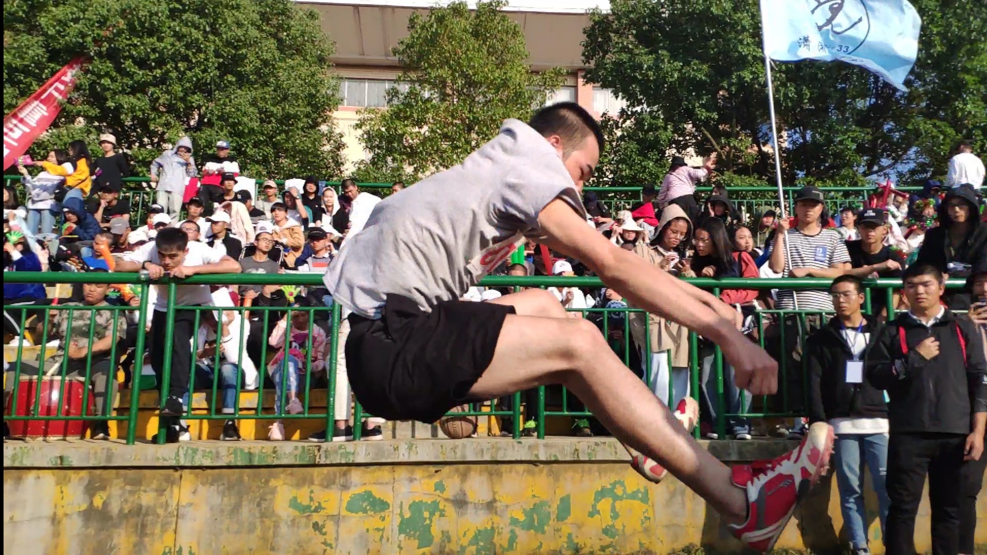 经过上午比赛的预热,中午的沉淀,运动员们都饱含热情地准备着跳远比赛。运动健儿们认真地进行着各自的热身运动,摩拳擦掌,跃跃欲试,纷纷赛出了令人欣喜的成绩。当信号旗挥下的那一刻,颇思钰选手迅速奔向沙坑,在准确地踏上踏板后,紧接着是有力的一跳。随即,颇思钰选手远远的落在了沙坑里,观众们顿时爆发出了热烈的掌声。之后的高旭斌选手和孙立翔选手也分别取得了不错的成绩,冲刺、跃起、落地,一串串连贯的动作激起观众们一声声加油呐喊,沙坑中那远远近近的脚印都是运动健儿们为目标而奋斗的成果。谈到自己平时的训练时,高旭斌选手说到,自己平时都是早上6点起床去训练,为的就是在比赛中能够取得出色的成绩。最后,三位选手均表示希望自己可以在明年的比赛中可以取得更好的成绩。