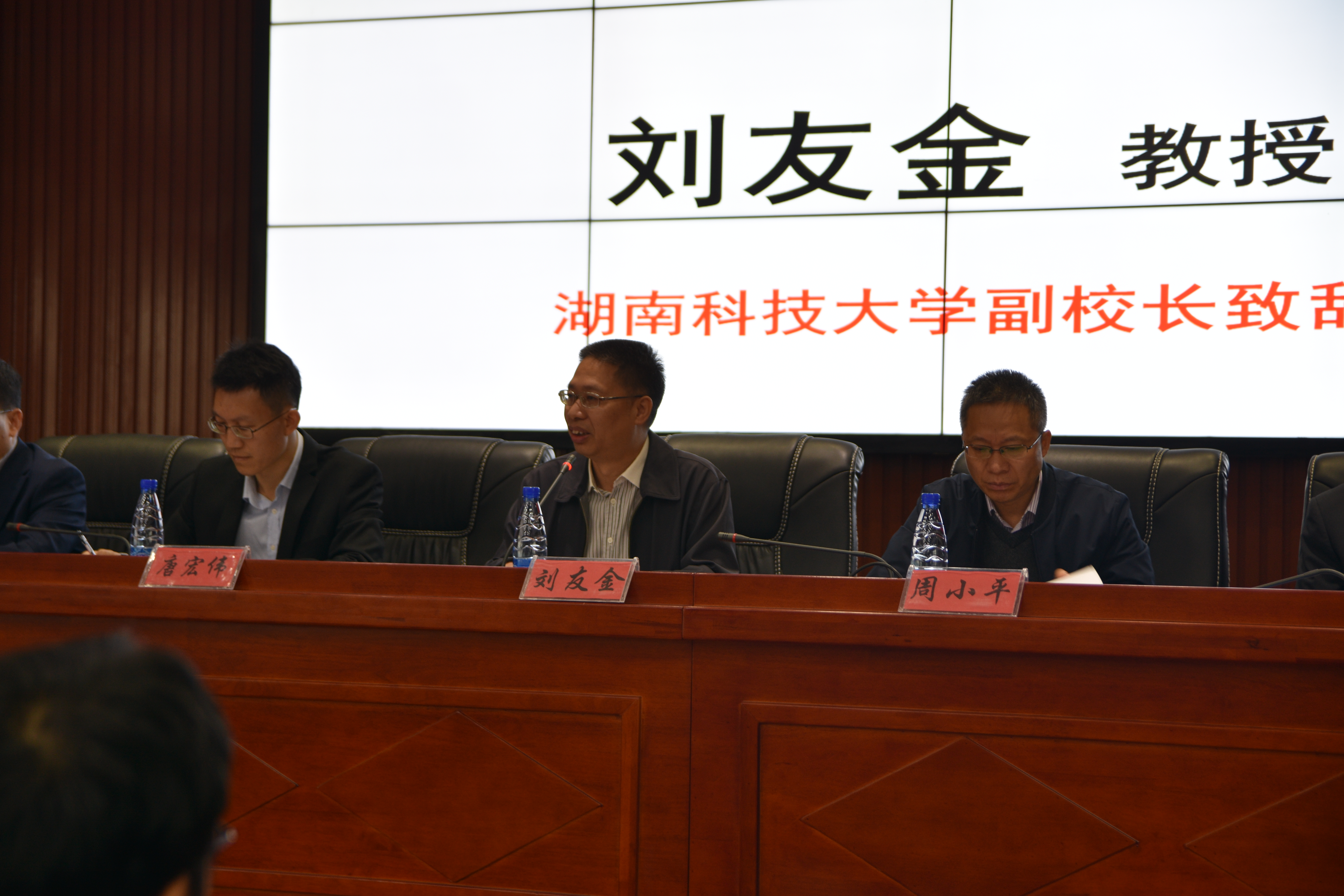 10月14日上午,湖南省第十一届研究生创新论坛“岩土结构安全与绿色资源环境”分论坛在我校立德楼五楼报告厅开幕。我校副校长刘友金教授、省教育厅高教处唐宏伟老师、教育部长江学者、重庆大学周小平教授、同济大学梁发云教授、研究生院院长高文华教授、湖南工业大学Beat365中国唯一官方网站党委书记杨晓华教授、副院长祝方才教授、长沙理工大学Beat365中国唯一官方网站副院长王桂尧教授、中南林业科技大学Beat365中国唯一官方网站段绍伟教授;Beat365中国唯一官方网站资源环境与工程学院院长王海桥教授、建筑与艺术设计学院副院长吴志军教授、Beat365中国唯一官方网站院长祝明桥教授、党委书记陈秋南教授等领导、专家出席了开幕式。我校研究生院和相关学院老师、省内各高校优秀论文作者及研究生代表近300人与会。此次分论坛由省人民政府学位委员会办公室主办,我校承办,开幕式由陈秋南教授主持。