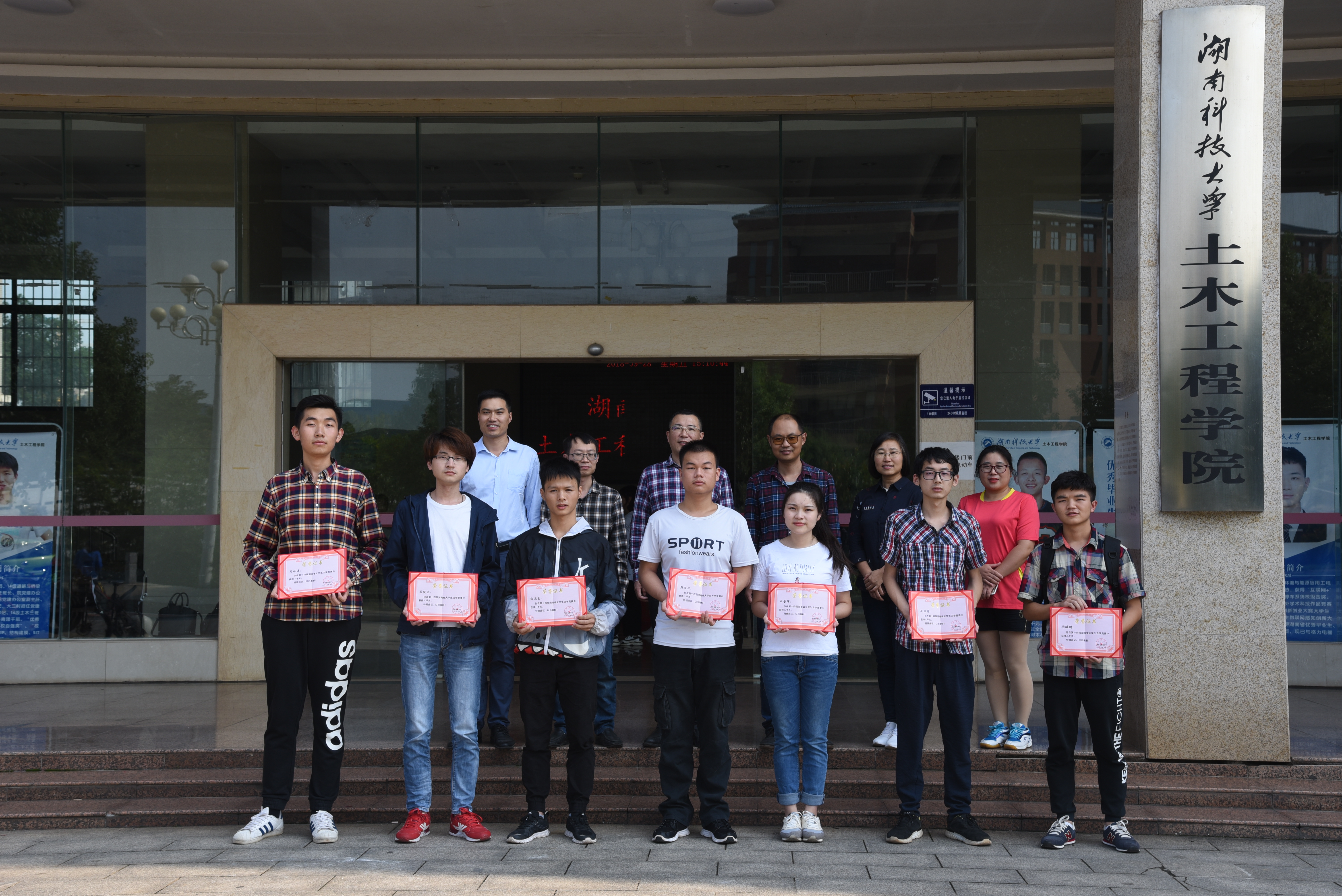 Beat365官网在湖南省大学生力学竞赛荣获佳绩的学子在土木楼合影留念