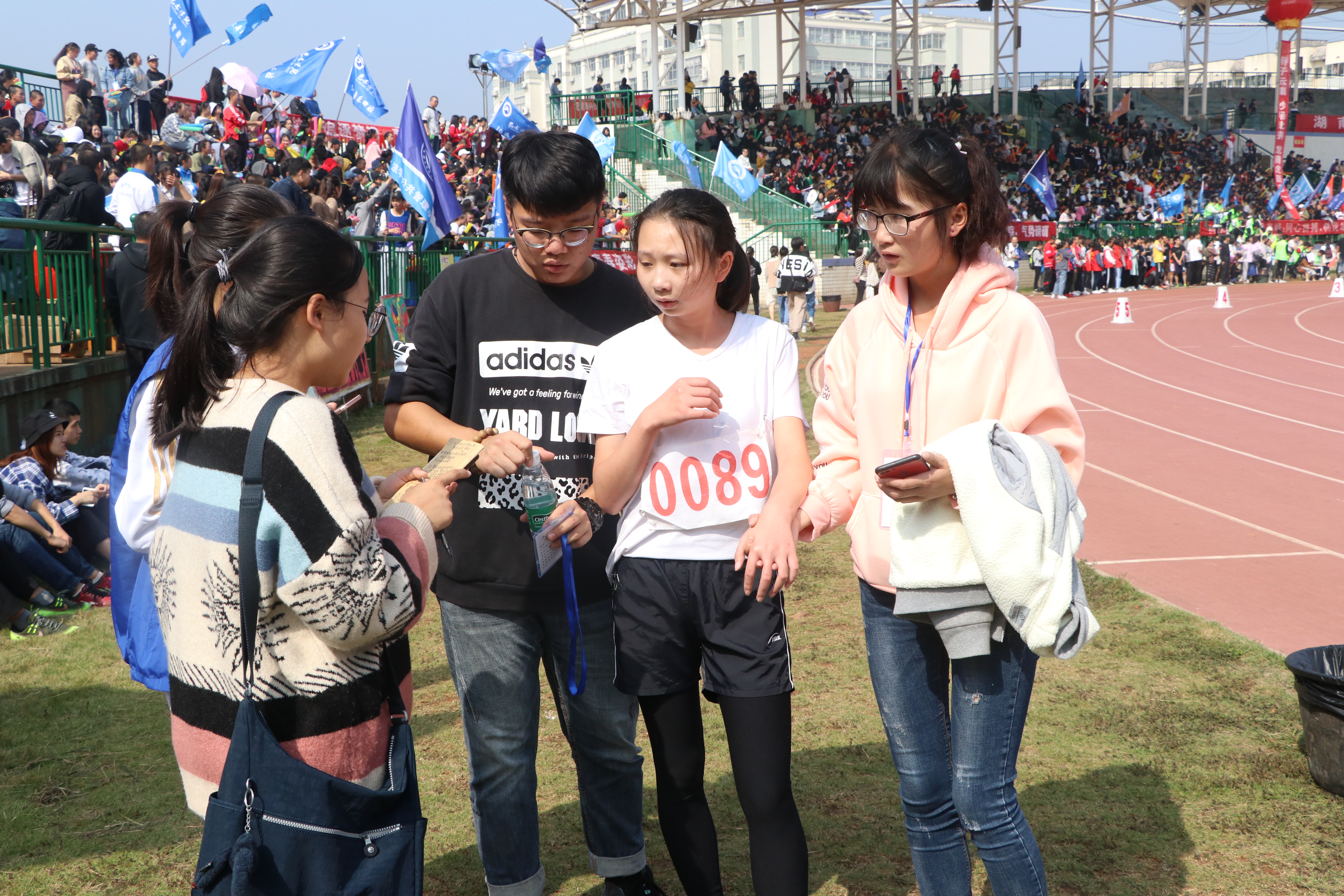 随着一声枪响,率先出战的土木健儿是卢莉妮,一直领先的她在最后时刻被反超,最终位居小组第二。在采访中,留着利落短发的她露出自信满满的笑容:“感觉自己非常帅!只是最后直道冲刺被反超,没有拿到第一名有点遗憾。” 她自信的姿态给予了同学们精神上的鼓舞。随后出战的运动员王晔在一道上以惊人的速度与其他选手拉开距离,在最后也取得了小组第二的好成绩。最后上场的谢婷沉着冷静,在第二个弯道处超越部分选手,最终保持着第二的位置到达终点。