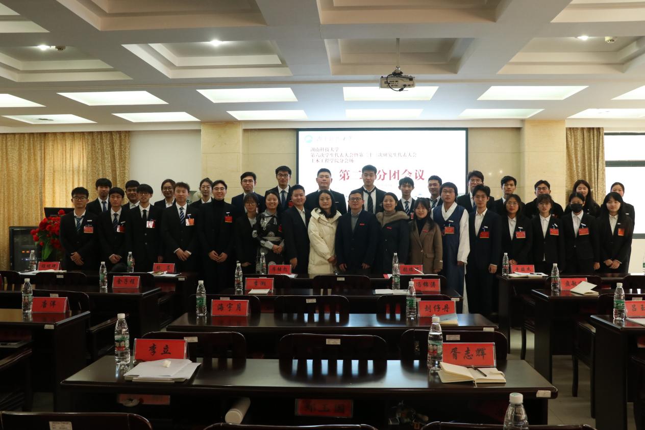 会议结束后,校团委书记马缤纷和院党委副书记王艳与学生代表们合影。