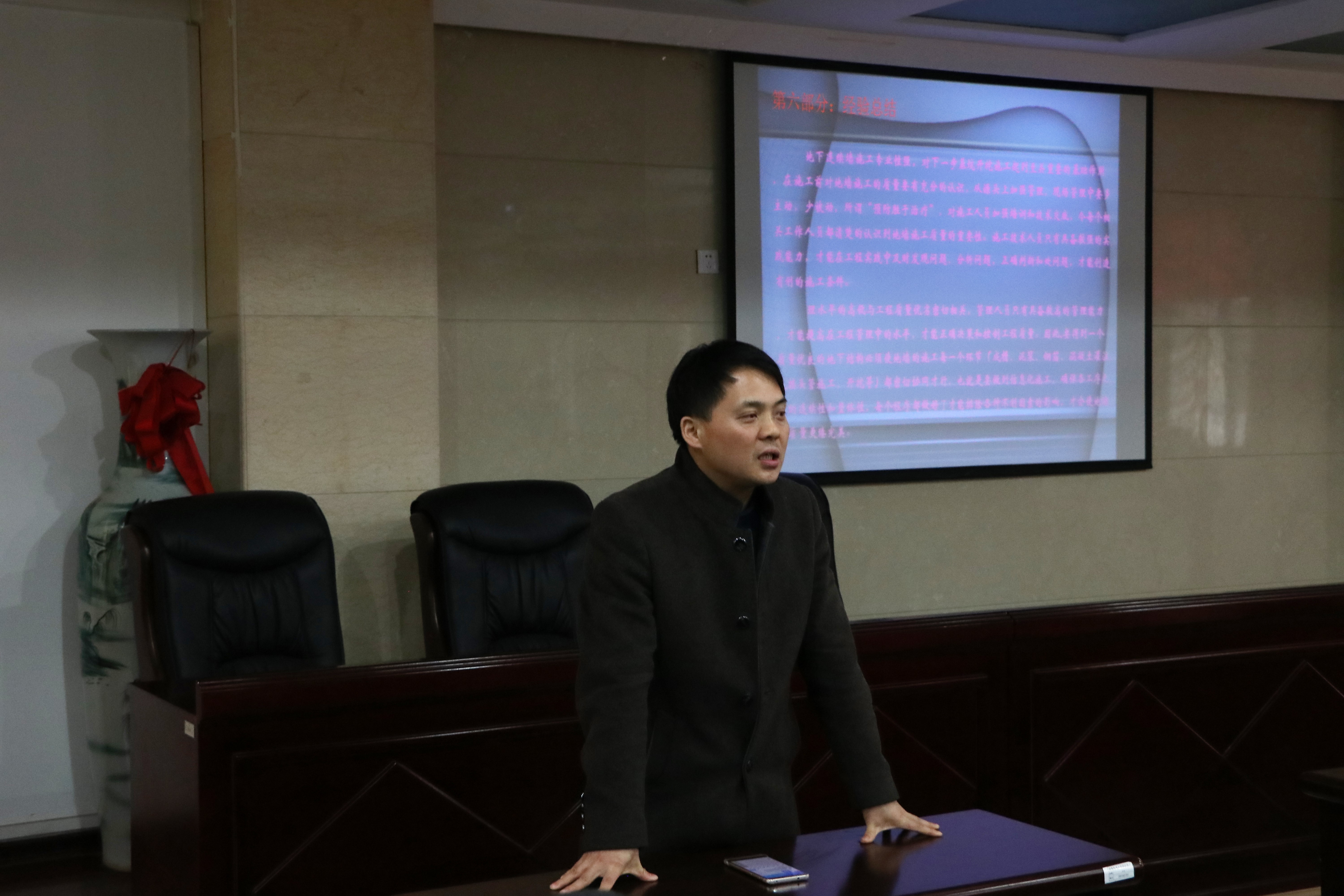 会议伊始,陈秋南书记对黄新博士进行了简要介绍。接着黄新博士以“地下连续墙施工技术详解”为报告主题进行了演讲,开门见山地展示了本次讲坛的演讲框架。他从地下连续墙的定义,应用范围及其优缺点开始,引出地下连续墙的发展历史,再逐步深入的介绍了施工工艺,并将其分出若干小点,如“施工前的准备”、“泥浆制备”、“刷壁和清槽”、“地下连续墙钢筋笼施工”、“混泥土浇筑”等。关于地下连续墙的常见事故及处理措施,黄新博士主要介绍了混泥土绕流及处理措施、地下连续墙露筋骨及预防措施和地下连续墙夹渣及渗漏水的预防措施。在介绍完施工技术后,黄新博士向同学们传授经验,并鼓励他们相互交流学习,同时表达了对同学们及学院的真挚祝愿。在最后的提问环节,部分同学提出了关于毕业设计、成槽等方面的问题,黄新博士一一耐心地解答。