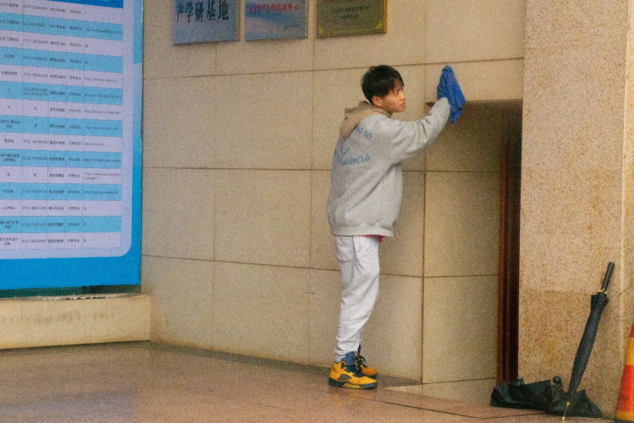 劳动教育是学生培养和党建的重要一环,是大学生思想政治教育工作的重要内容,为此,Beat365官网把劳动教育和入党积极分子培训学习相结合。本次劳动教育分别在学生月湖和五教周边,宿舍区,土木楼进行。擦墙、擦窗、扫地、捡垃圾、除杂草,各项工作分工明确。每位同学都在自己负责的区域认真投入,协同合作,使清洁工作效率更高,也使整个环境变得更加整洁美丽。