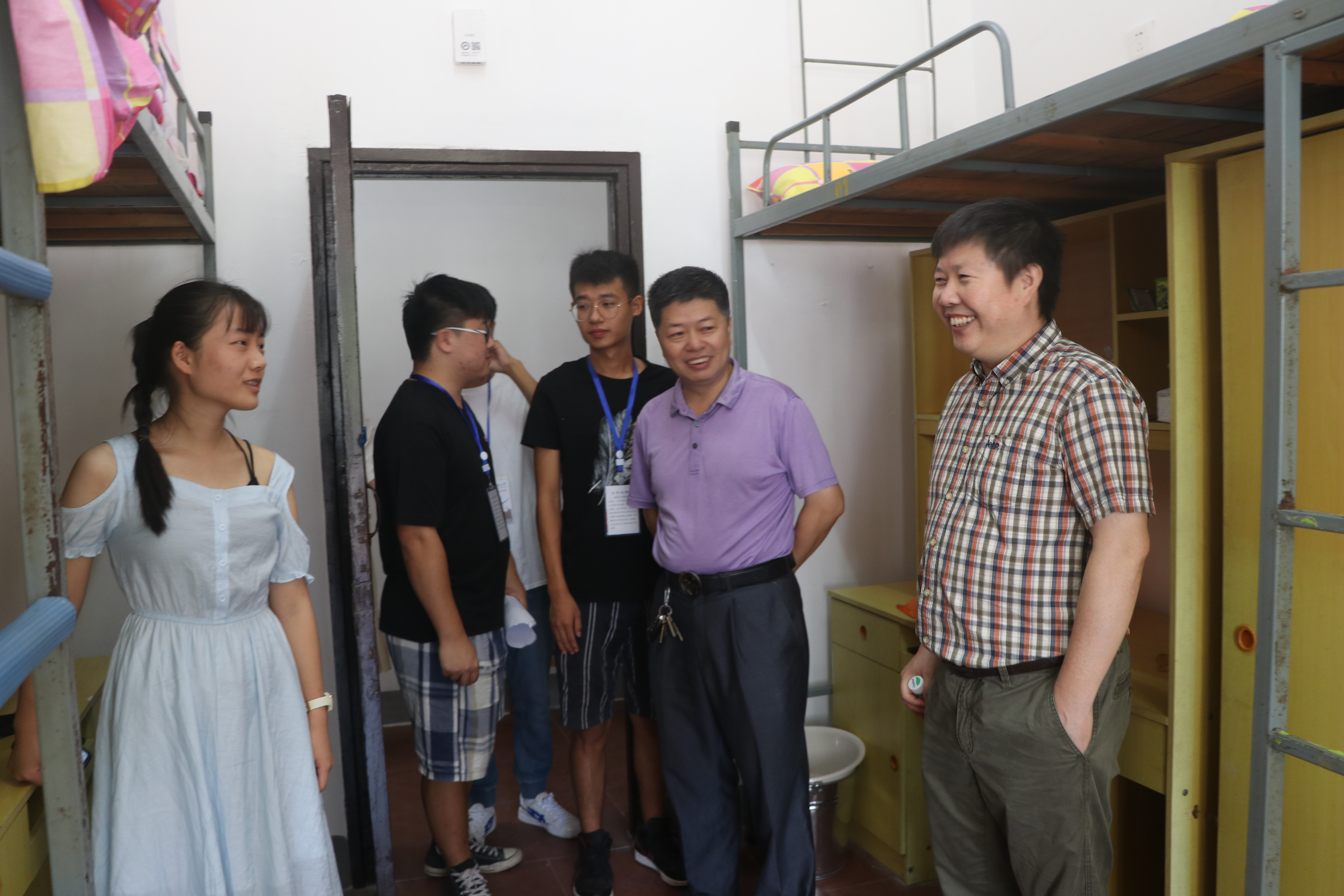 首先,祝院长和程书记等一行人去了4区女生寝室。由于今年Beat365官网女生人数增多,所以18级女生被安排住在原来只住男生的4区,因此,考虑到女生的安全问题,学院已经给女生各个寝室装好了窗帘并提到会尽快解决门禁问题。女生宿舍大都干净整洁,祝院长和程书记俯身亲切询问她们是否满意宿舍条件并亲自帮她们检查宿舍基本设施。其间,祝院长和程书记还碰上了因为不舍仍在宿舍的新生父母,他们交谈甚欢,家长们也表示对学校和宿舍都很满意。