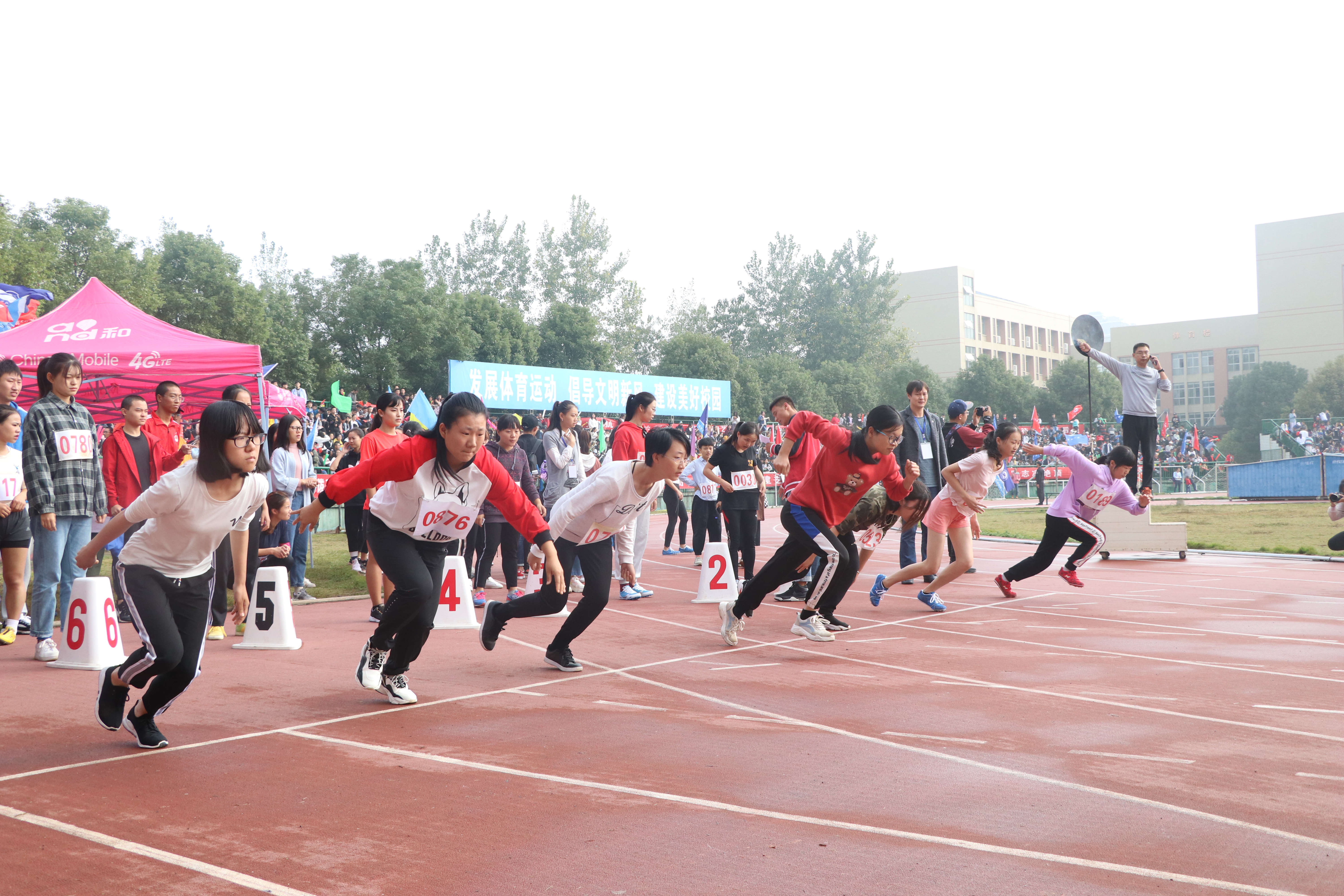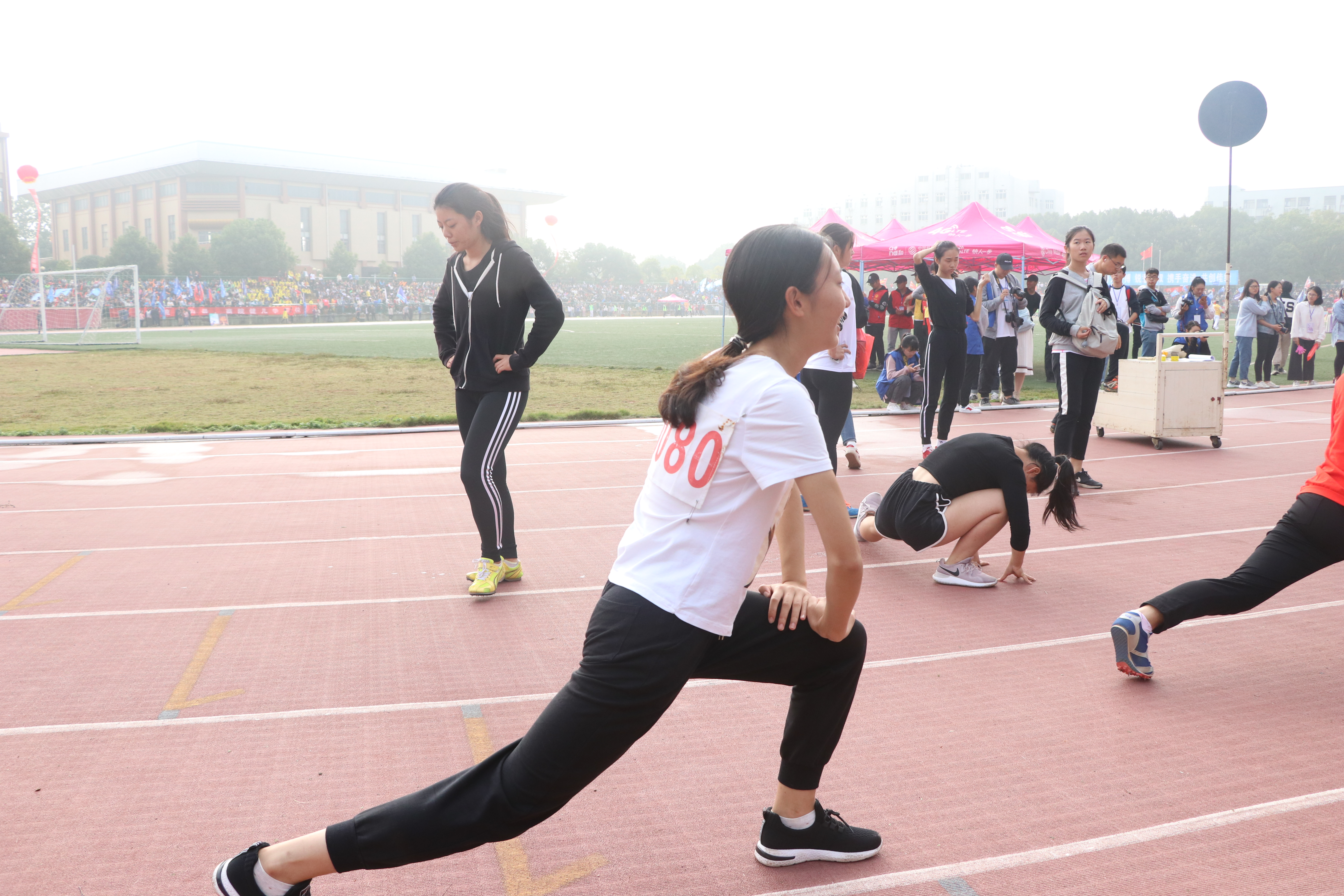 跑道上,参赛选手正在有条不紊地进行着一系列热身运动:颈部拉伸、扩胸运动、弓步压腿……Beat365官网选手翁佳慧率先出战,裁判员一声令下,运动健儿们迅速开跑。只见翁佳慧迅速起身,率先冲出起跑线,欢呼声,鼓声,加油声此起彼伏,连绵不断。随着时间的推移,很快便到了第七组,80号选手匡静怡迈着坚定的步伐走向跑道,站在起跑线前耐心的等待着比赛的开始,其他运动员也不甘示弱,个个摩拳擦掌,跃跃欲试,想为自己的学院增光添彩。枪声一响,一个个参赛者如箭在弦上,呼啸而出,转眼间便已冲刺终点。