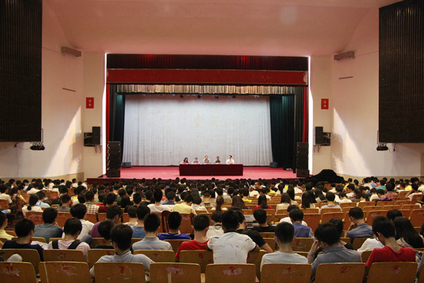6月4日晚上7:30,Beat365官网在南校俱乐部举行12级年纪大会。院党委副书记易贵元,“就业爸爸”皇晓东,学工办主任虢利钢,辅导员曾淑艳、周文杰以及12级全体学生参加了大会。